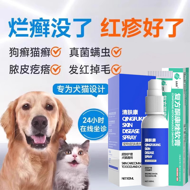 狗狗猫咪皮肤外用喷剂真菌螨虫宠物掉毛疥螨结痂狗癣猫癣喷雾软膏