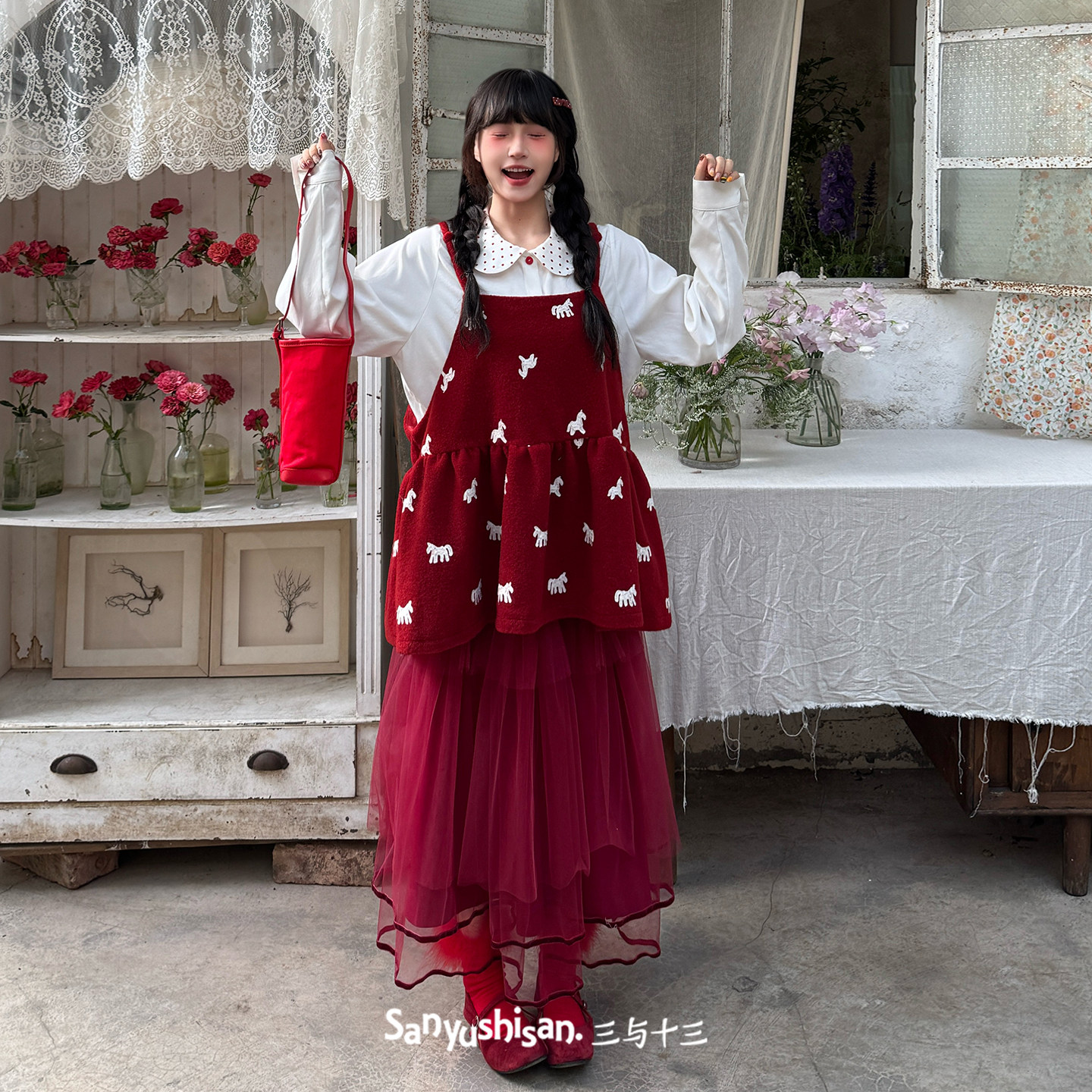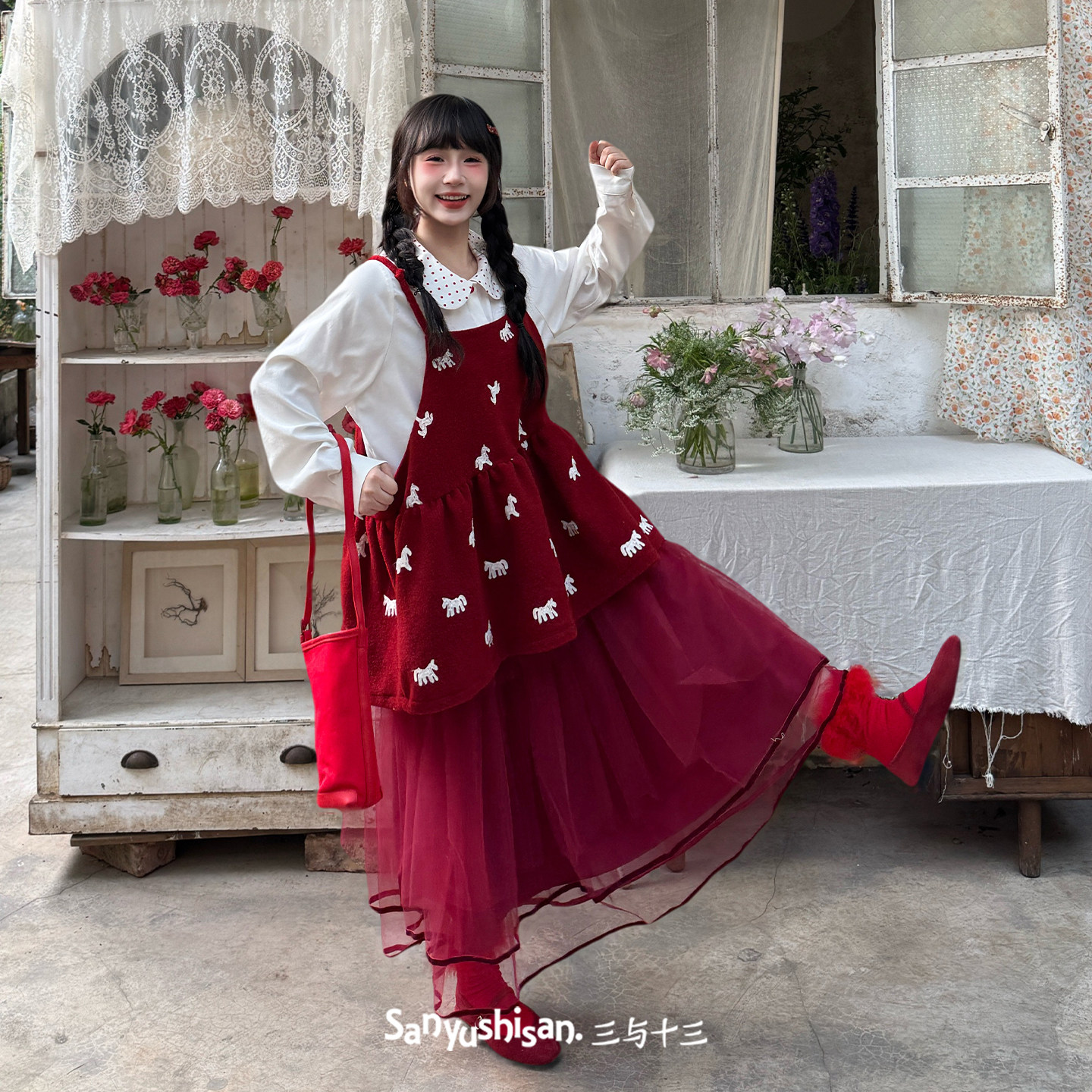 三与十三|玻璃纱落日|春季日系氛围感网纱蛋糕裙高腰显瘦半身裙女