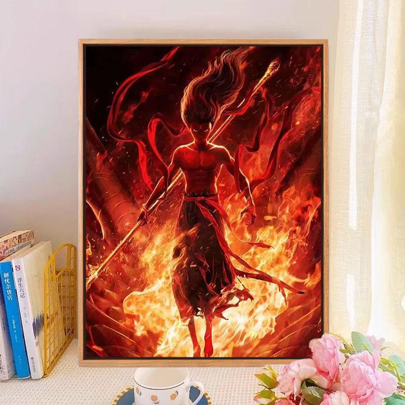 2025新款卡通动漫哪吒钻石画儿童房床头男孩手工DIY点钻画十字绣