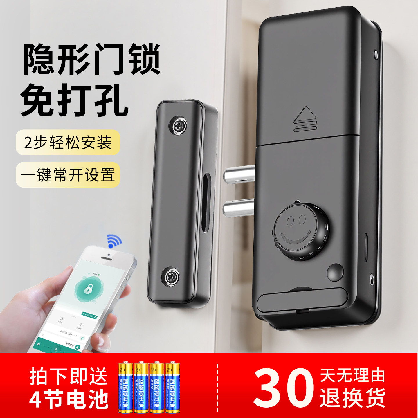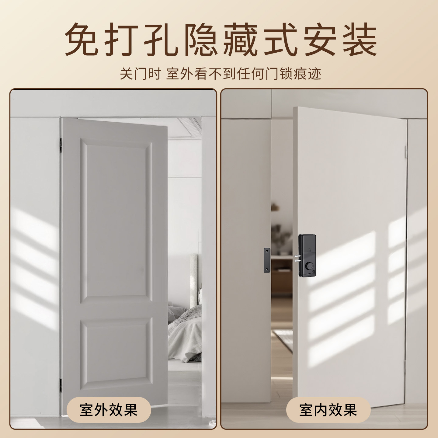 免打孔门锁 隐形门无损安装 涂鸦遥控电子刷卡免开孔房门木门暗门