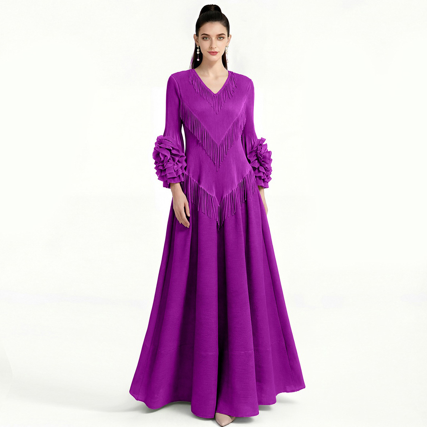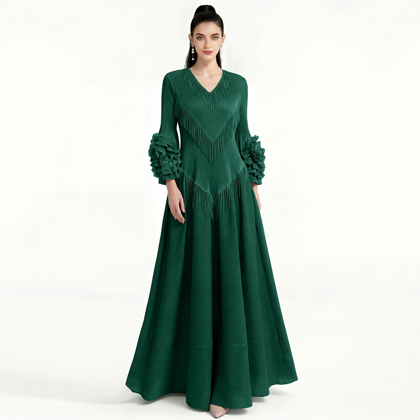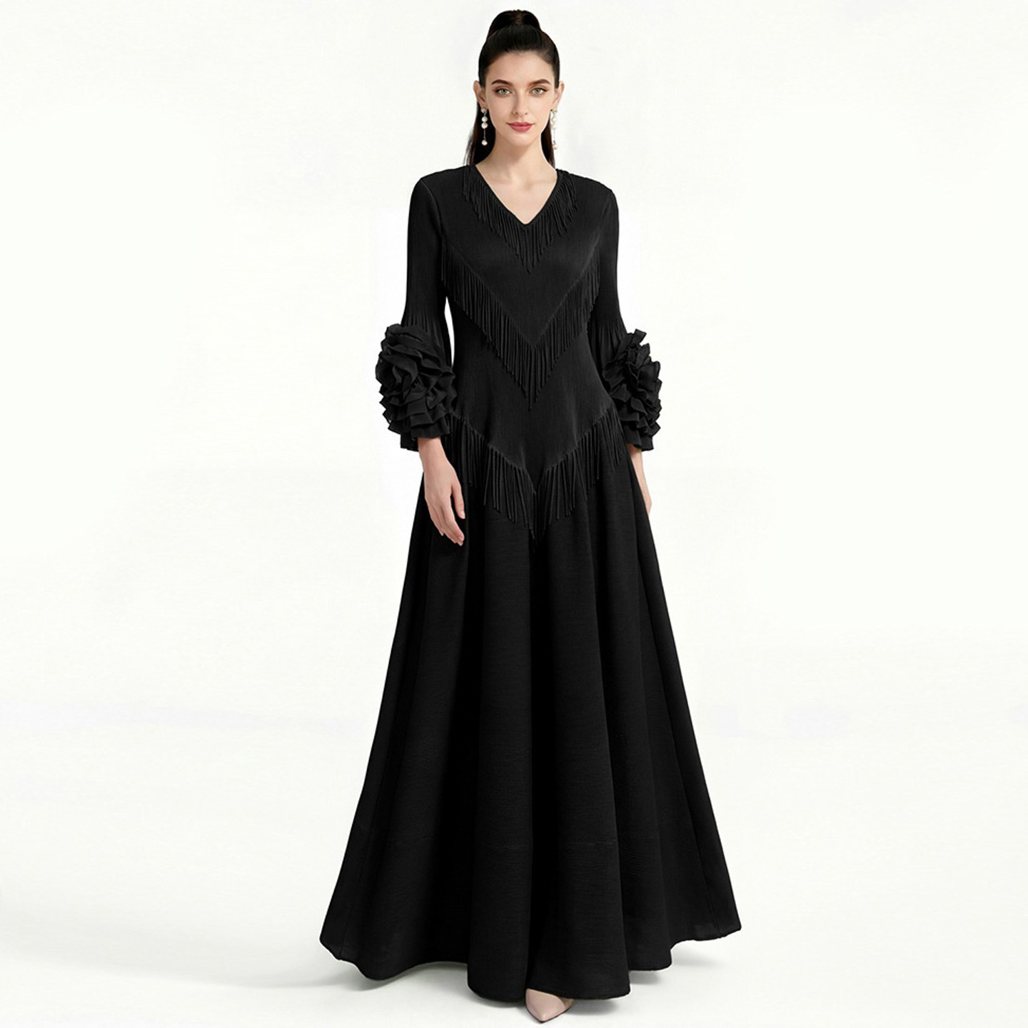 名媛明星款法式流苏V领走秀礼服