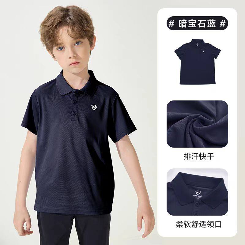 诺诗兰儿童polo衫短袖夏季翻领纯色薄款运动休闲速干T恤