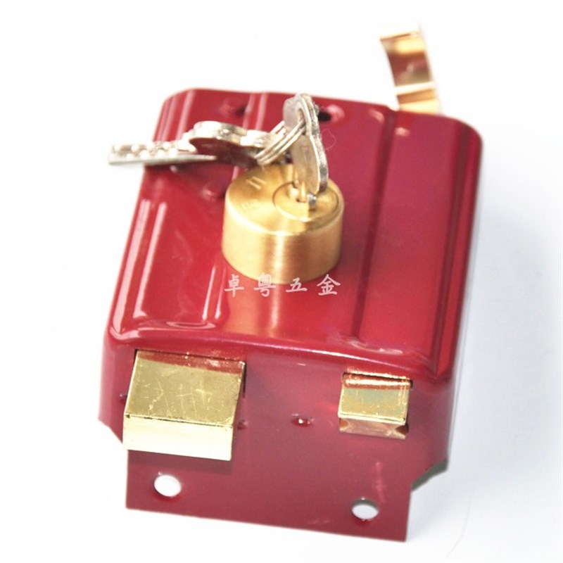 GULI固力牌556RL外装双舌防盗门锁 木门铜锁芯门锁老式红色铁门锁