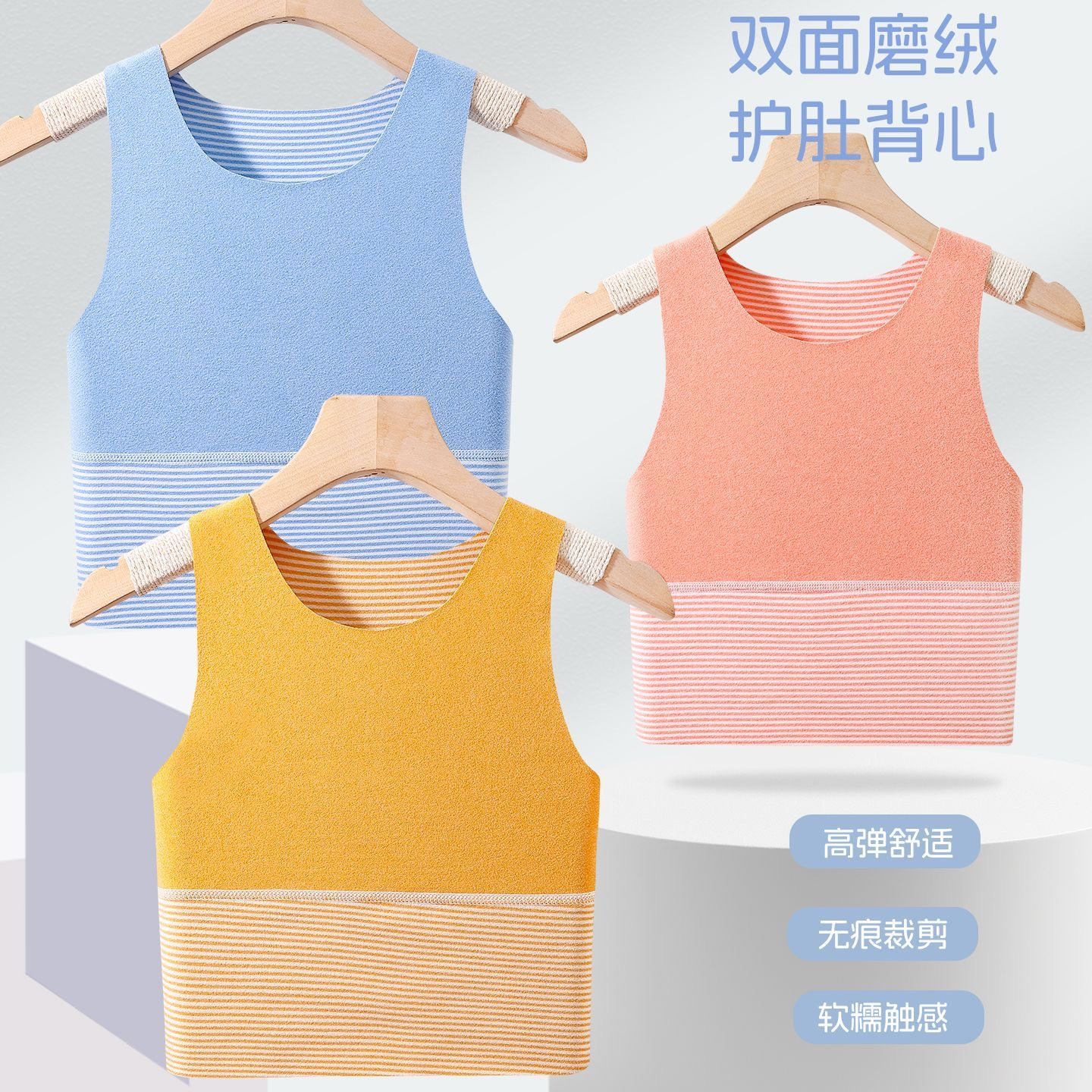 无痕儿童贴身打底德绒保暖背心秋冬高弹舒适双面磨绒男女宝宝内衣