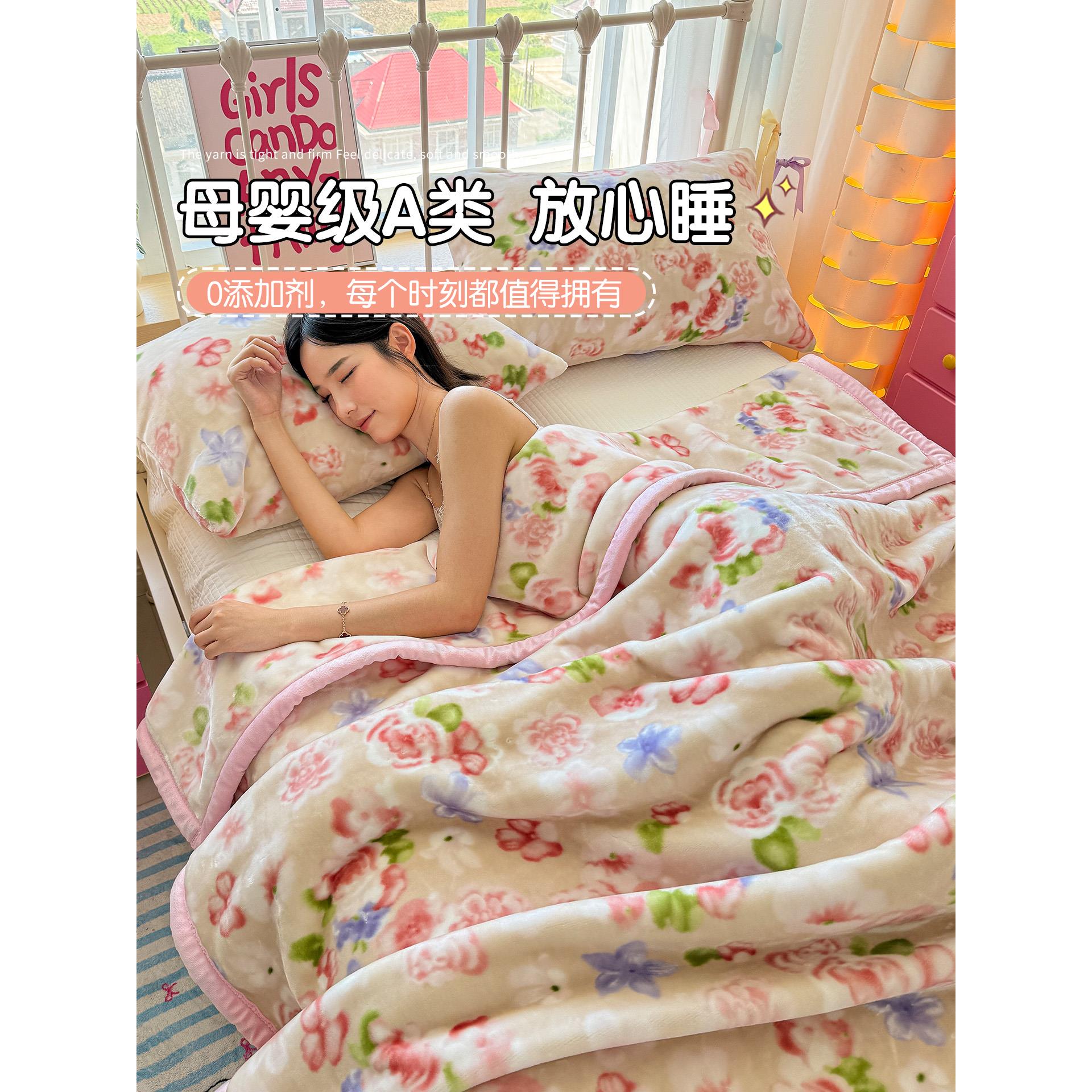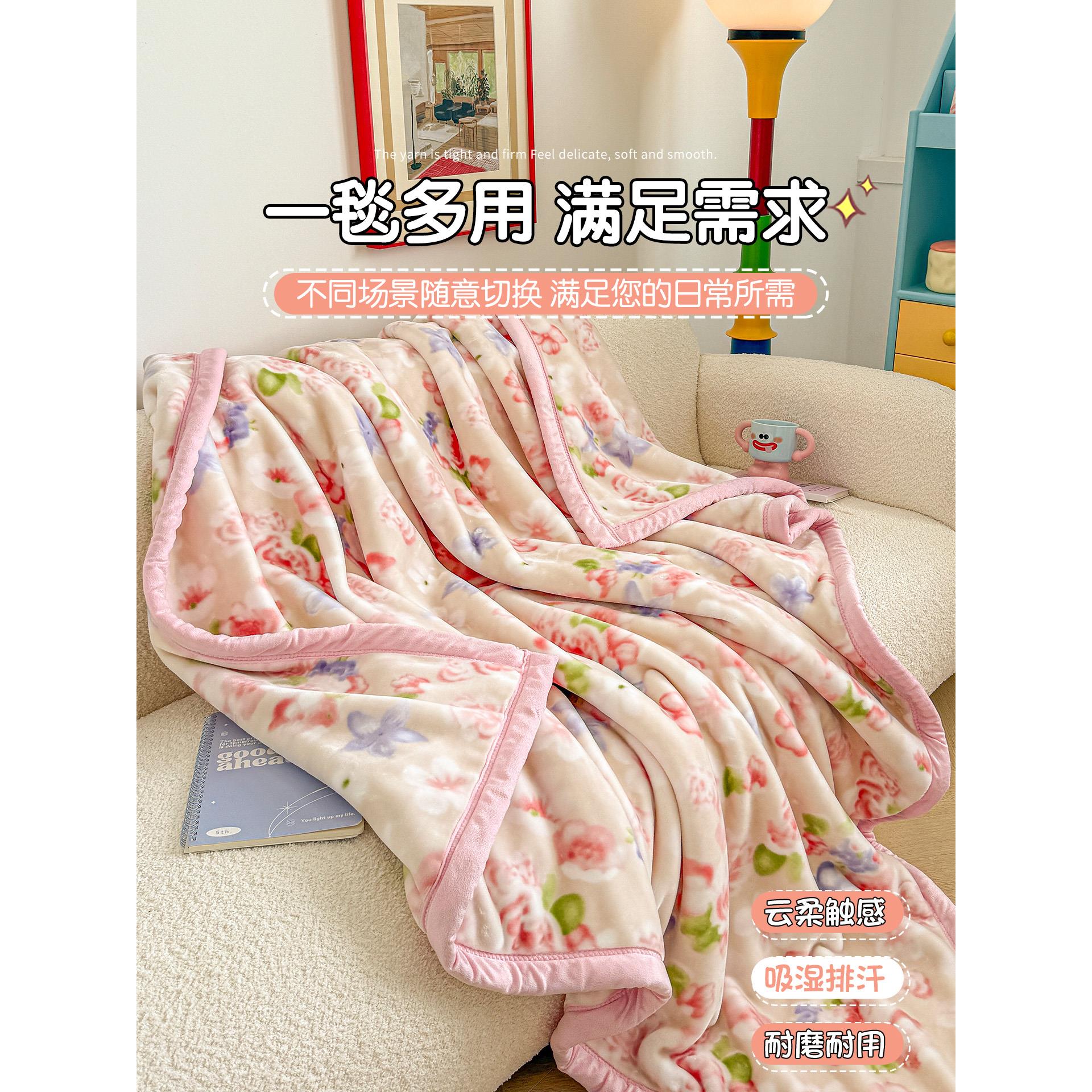 被子冬被毛毯2025新款高档拉舍尔冬季加绒加厚双面牛奶绒盖毯沙发