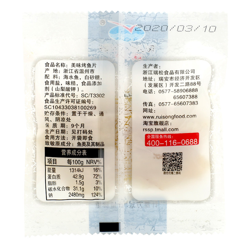 瑞松烤鱼片温州特产零食鳕鱼片熟鱼片手撕鱼干500g小包装海味小吃