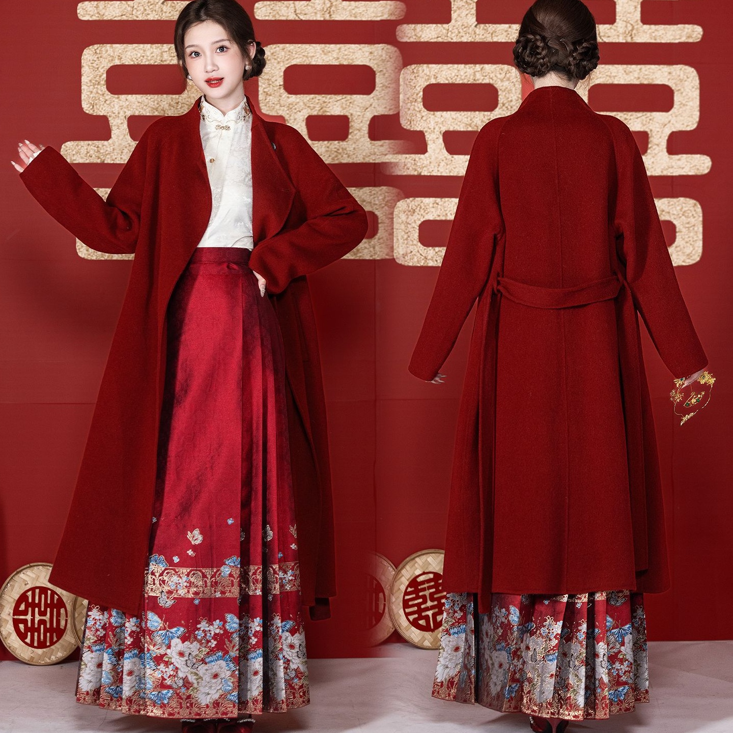 红色大衣结婚外套新娘秋冬订婚礼服日常款羊毛大衣敬酒服回门
