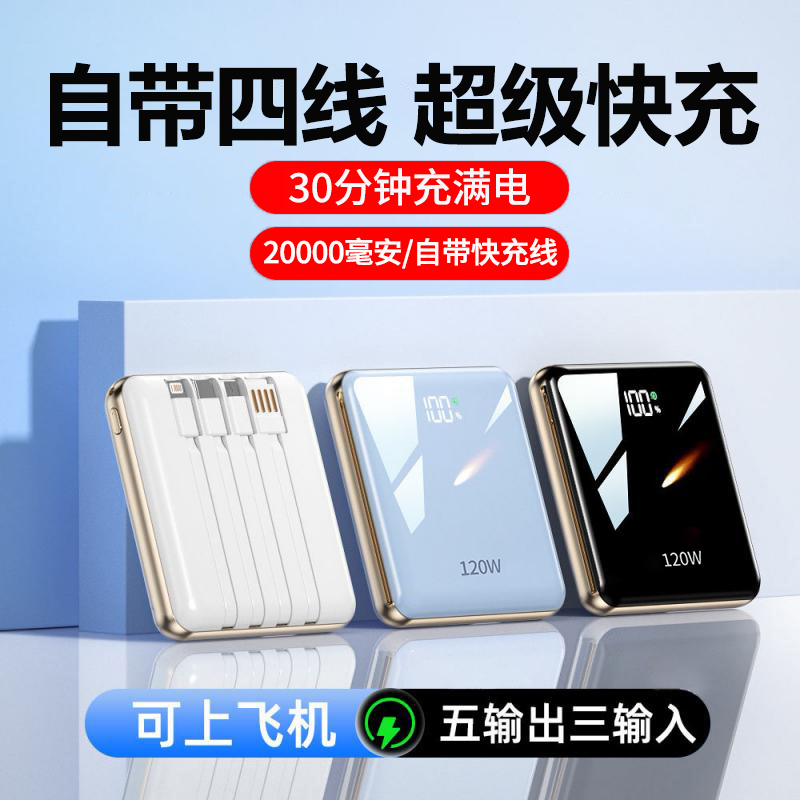 【新国标3C认证】超级快充充电宝20000毫安大容量自带线超薄小巧便携迷你移动电源适用华为苹果专用可上飞机