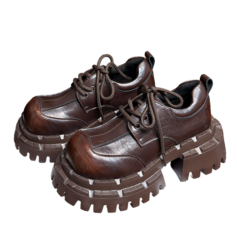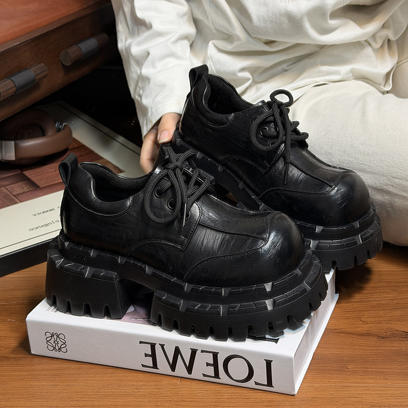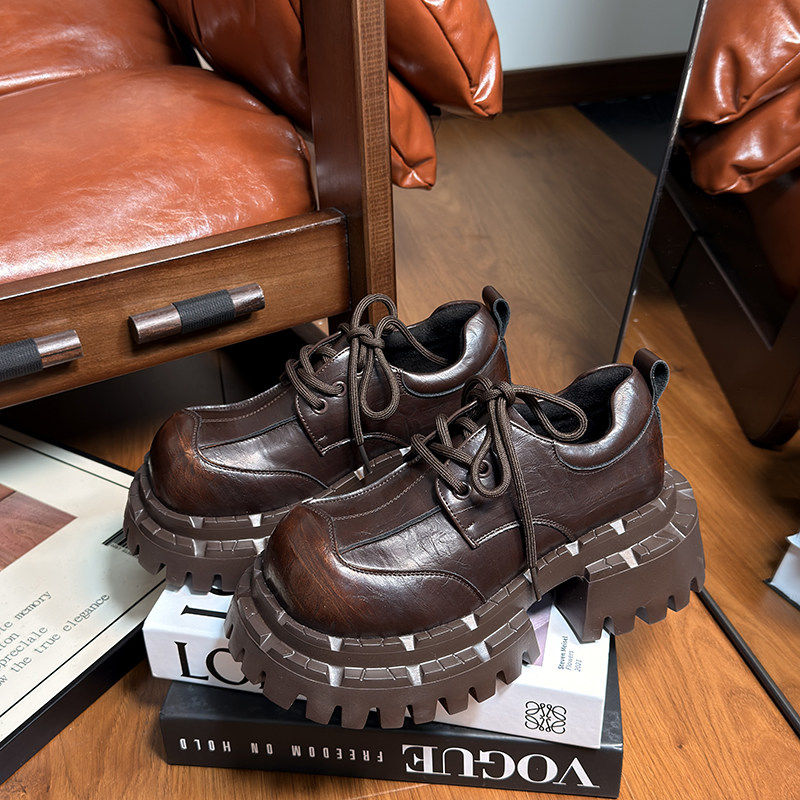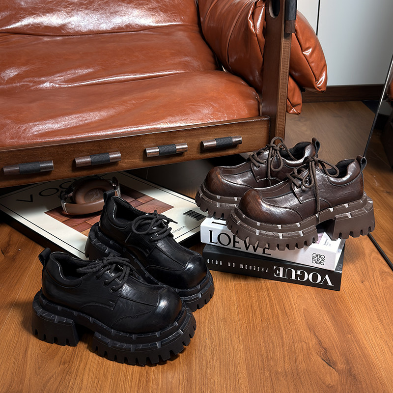复古真皮松糕厚底小皮鞋女英伦风圆头德比鞋小个子增高乐福鞋单鞋