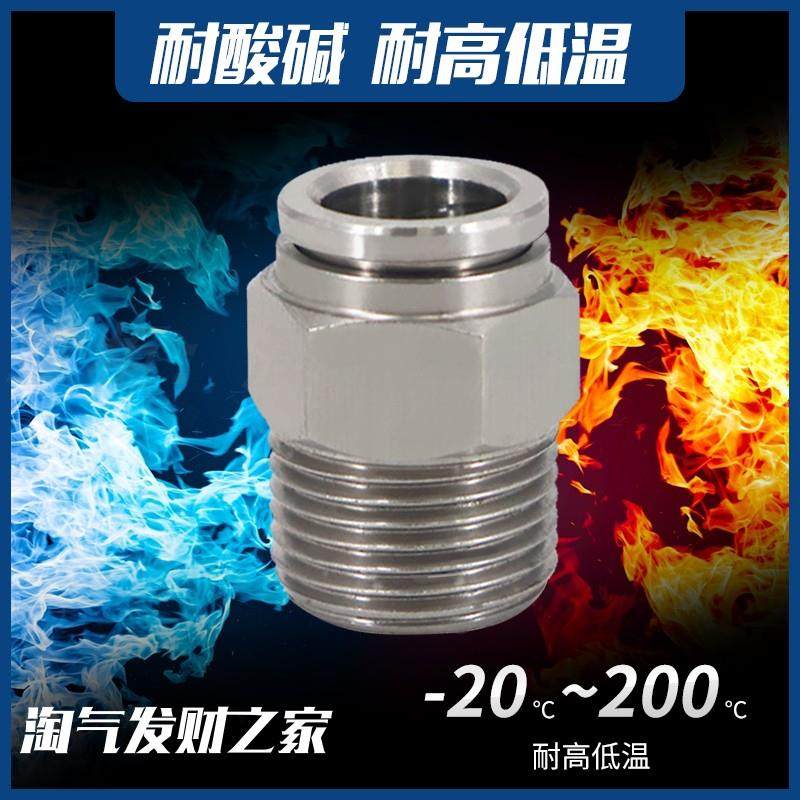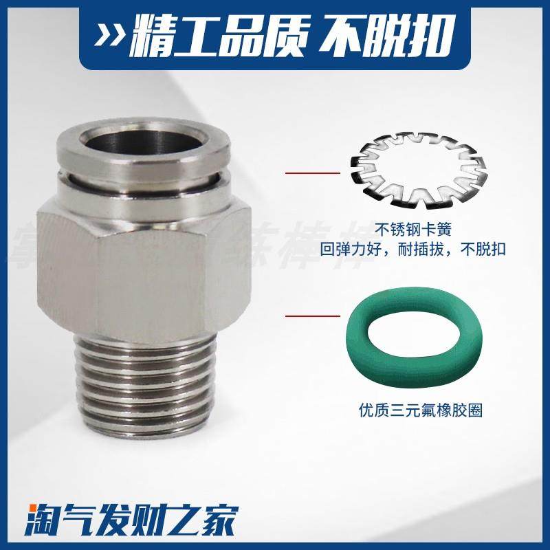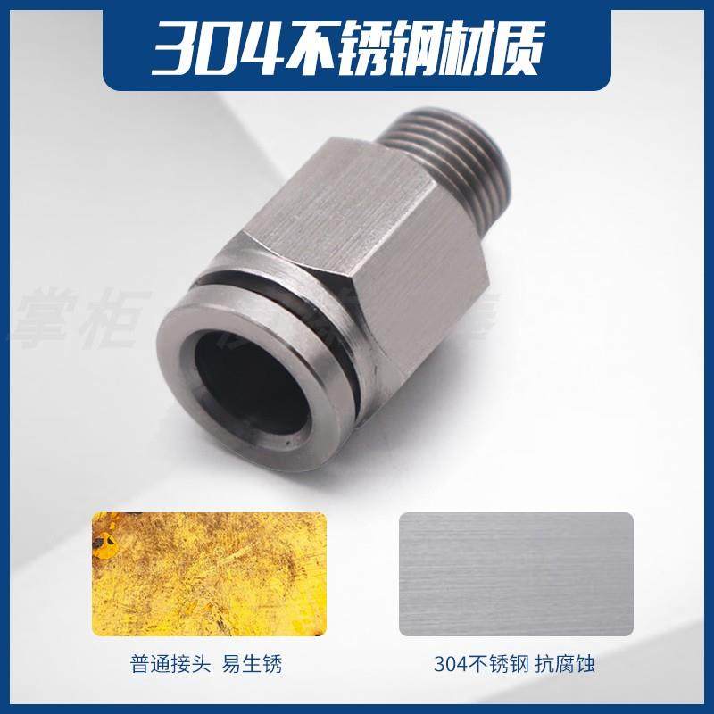 304不锈钢气管快速接头快插气动快接螺纹高压气嘴直通对接元件PC4