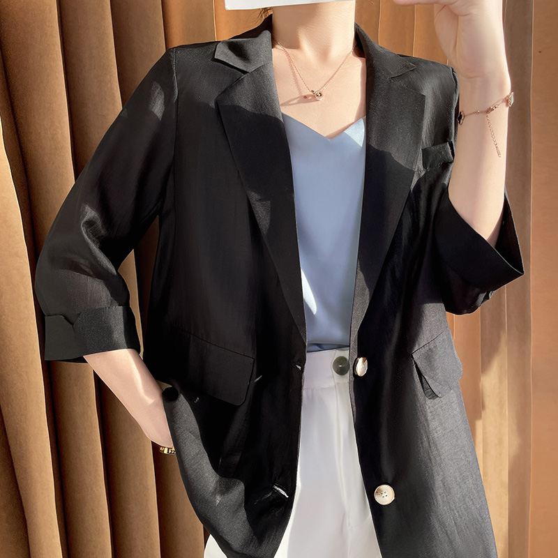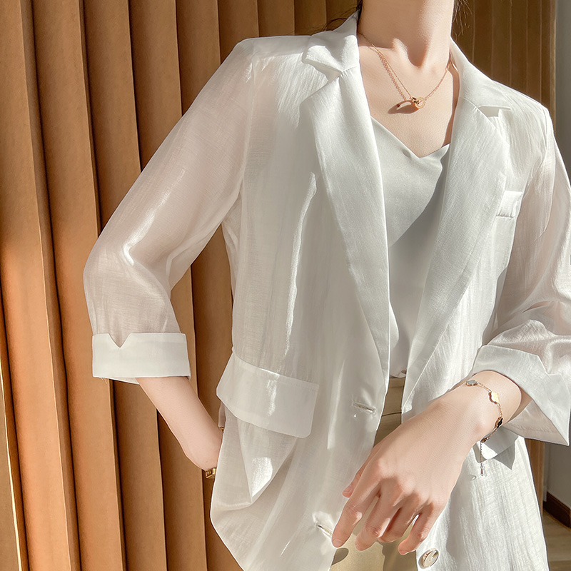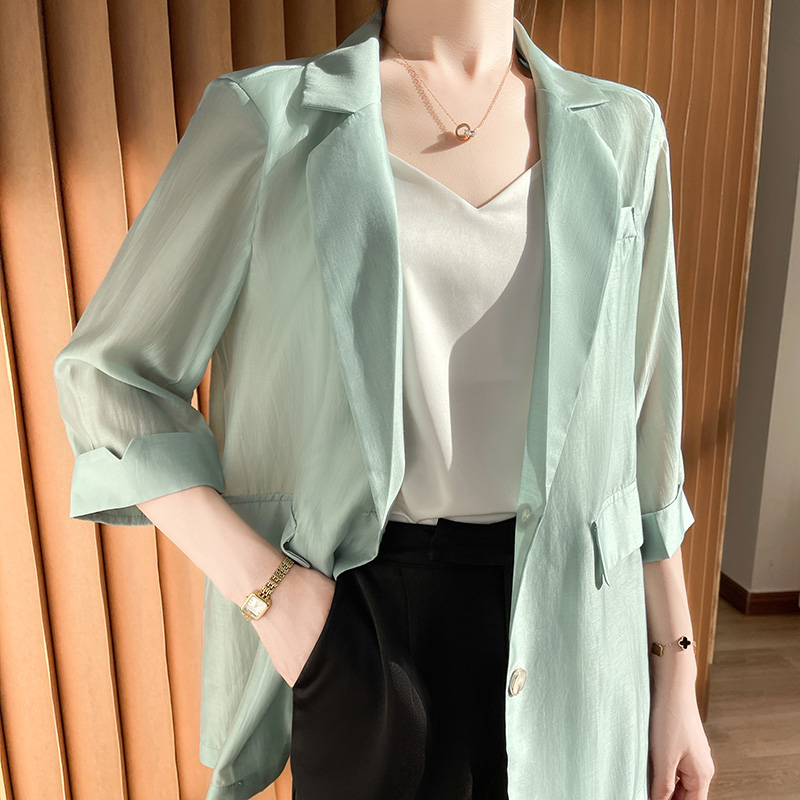 天丝小西装上衣女夏季薄款时尚休闲防晒新款高级感西服衬衫外套