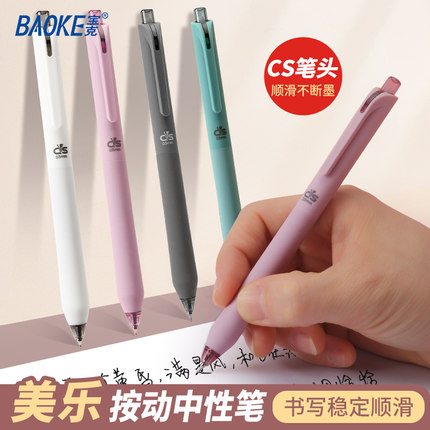 宝克美乐加长软握按动中性笔高颜值速干CS笔头0.5mm大容量刷题笔ins日系黑笔顺滑学生用黑色按压式水笔PC1929