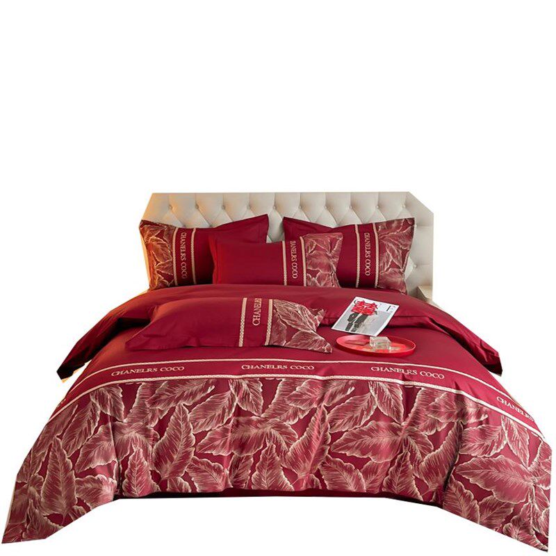 高档中式婚庆四件套大红色陪嫁床单被G套纯棉结婚床上用品婚房喜