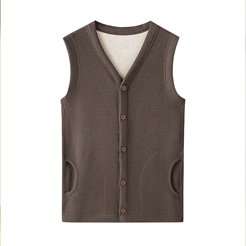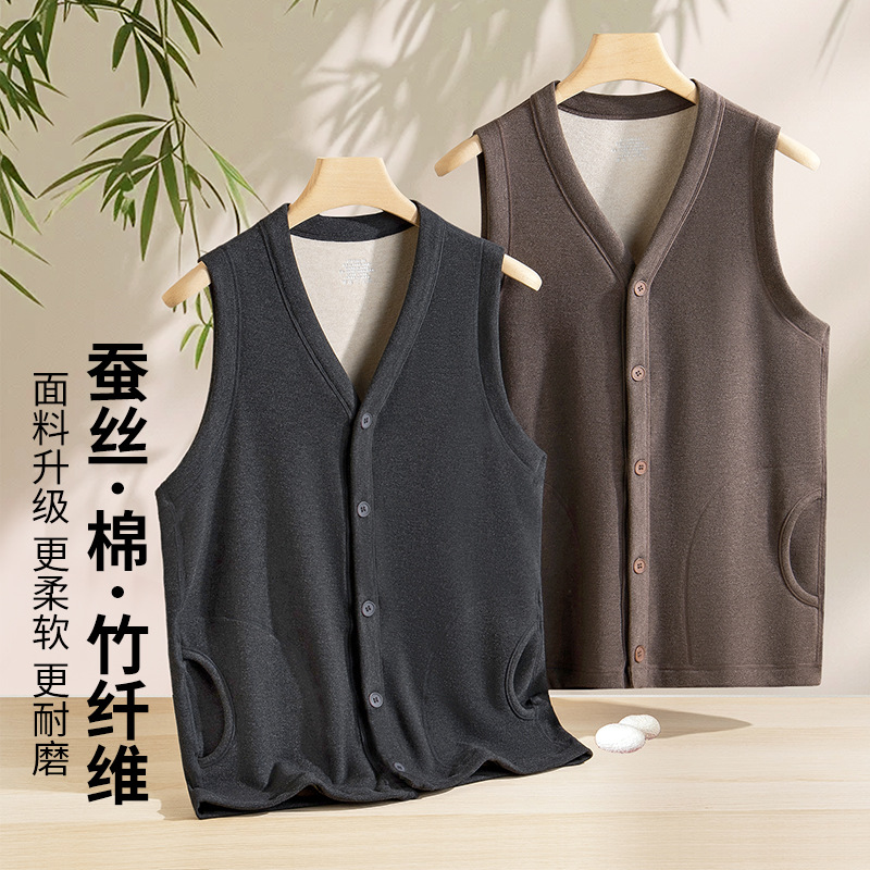 巨厚暖冬男士蚕丝羊毛保暖背心加绒加厚开衫马甲430g中老年人防寒