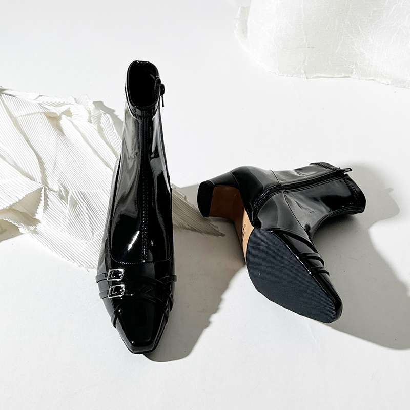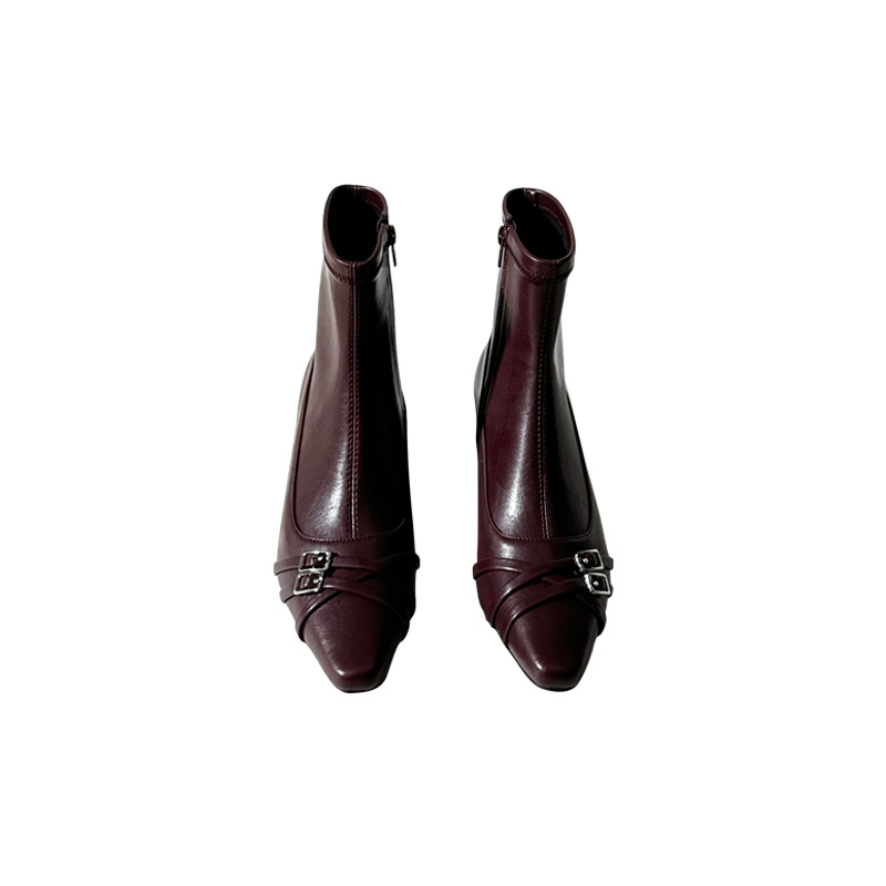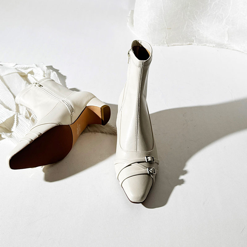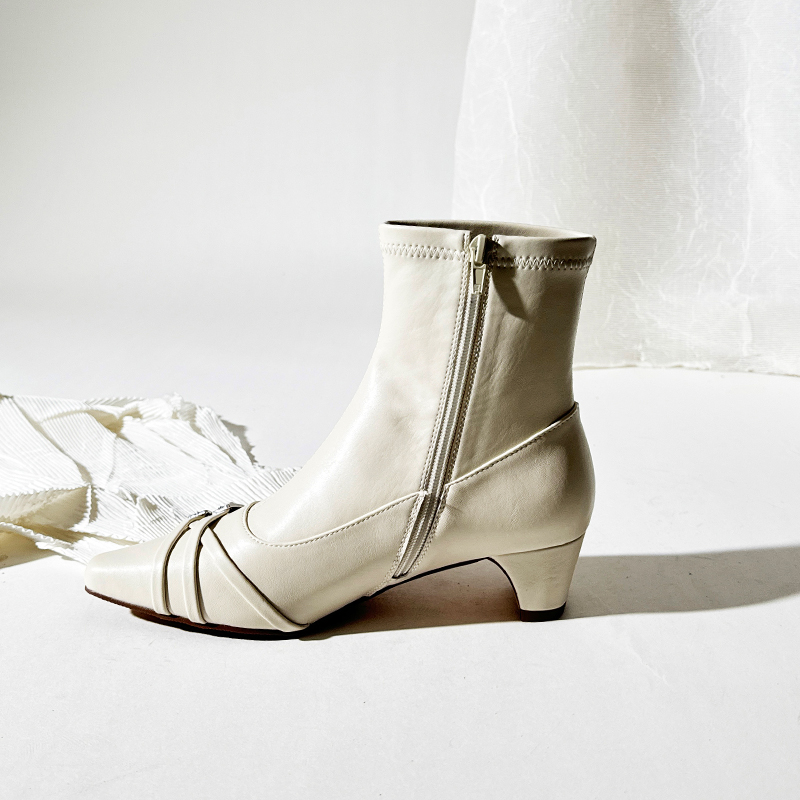 莲花府邸2025冬季女靴法式小众设计短靴粗跟尖头时尚百搭弹力靴子