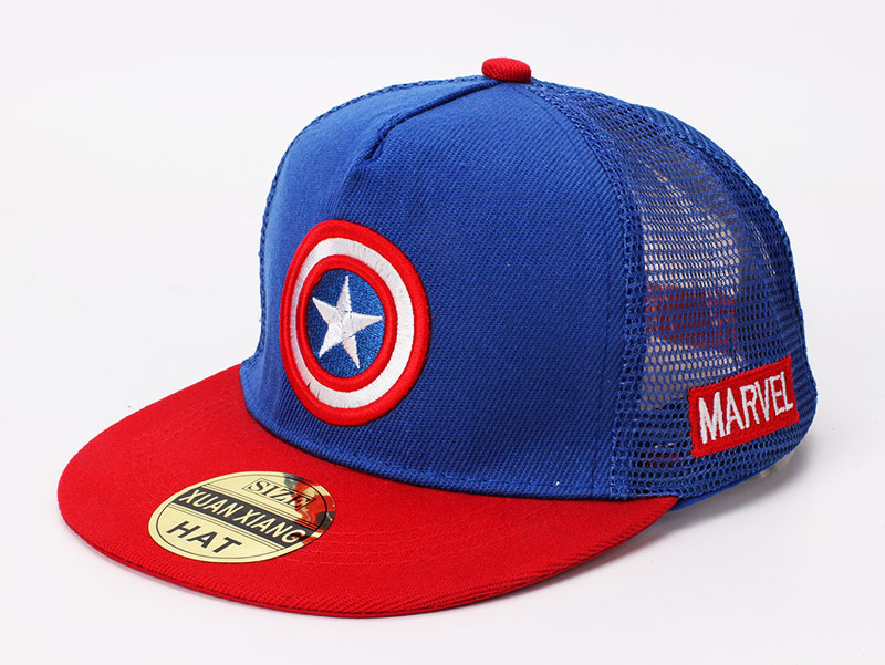 儿童美国队长帽子春秋男童卡通棒球帽平沿太阳帽宝宝防晒遮阳帽网