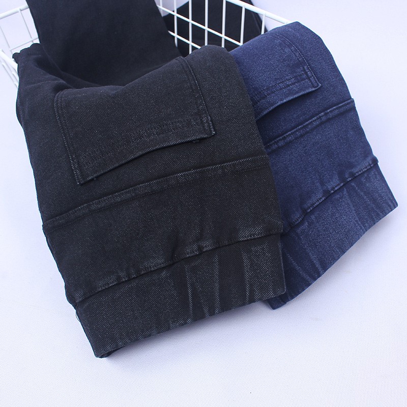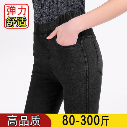 特大码胖mm高腰弹力加绒牛仔裤200斤女秋冬修身显瘦百搭小脚裤300