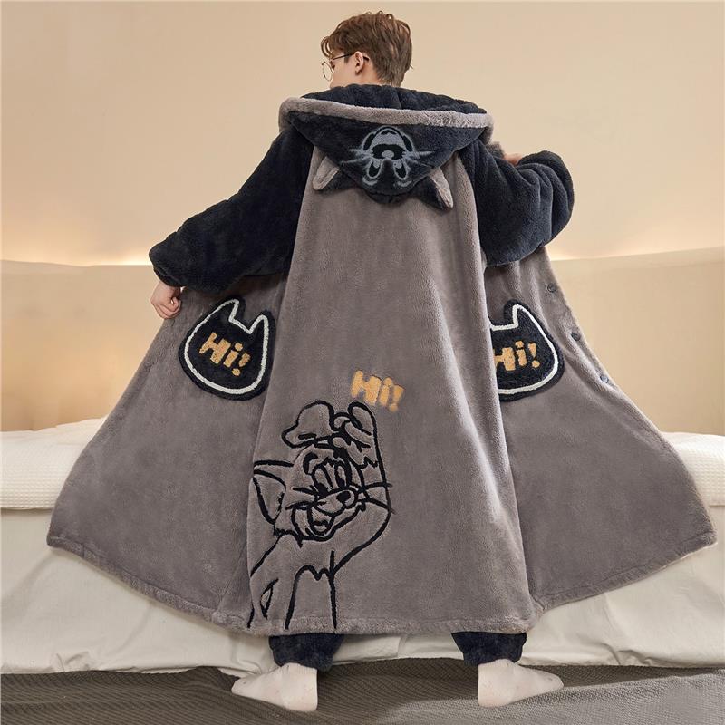 冬季加绒加厚珊瑚绒男士睡衣男款睡袍青少年学生卡通家居服秋冬款