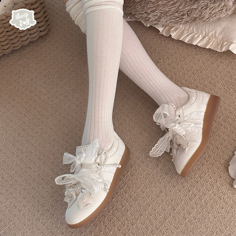 【现货】正品黑白天鹅绵羊运动德训鞋原创lo跑蕾丝少女日系运动鞋