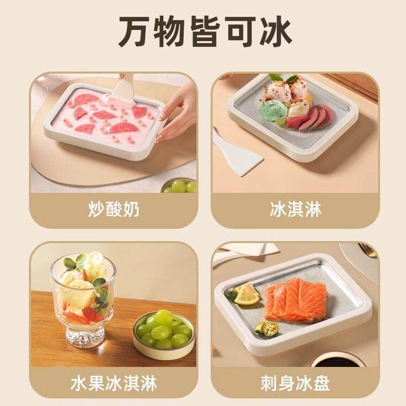 纯钛炒酸奶机diy家用小型迷你炒酸奶盘炒冰沙机免插电儿童炒冰机