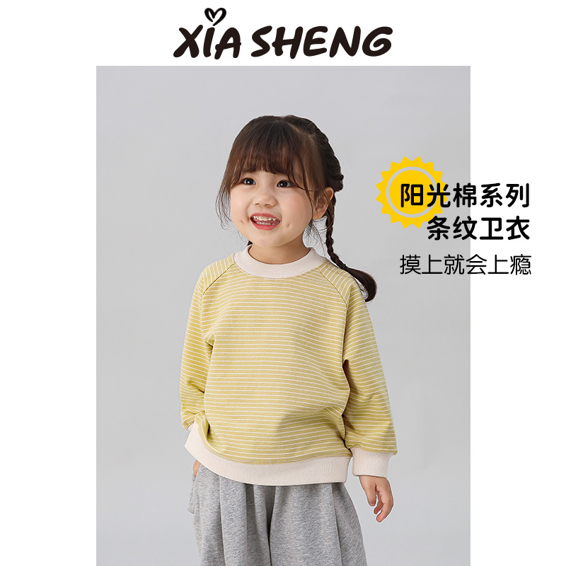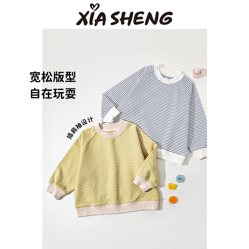 夏生 休闲百搭条纹儿童卫衣 男女童春装上衣宝宝衣服童装外套新款