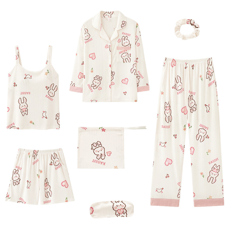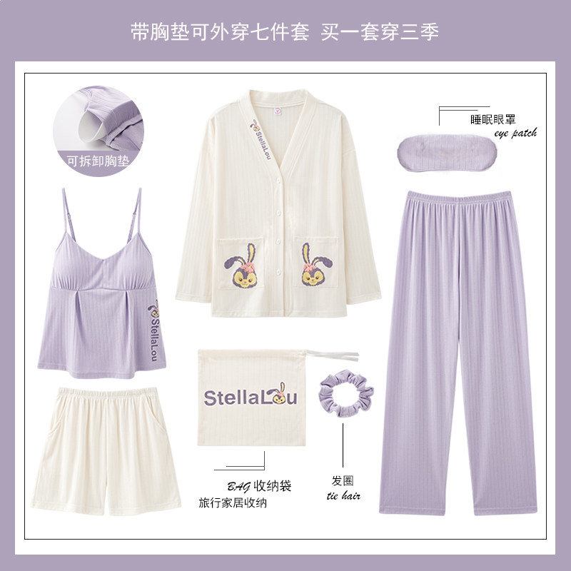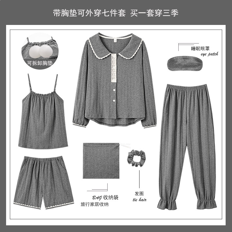 带胸垫睡衣女春秋季七件套纯棉吊带性感春夏天2026新款家居服长袖