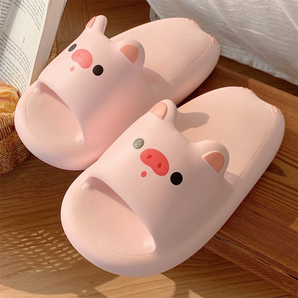 细细条少女心卡通粉色小猪女夏厚底防滑凉拖鞋时尚休闲居家拖鞋
