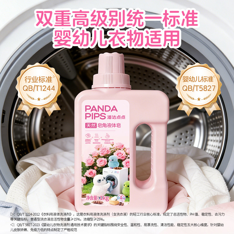 红玫瑰潘达点点皂角洗衣液1kg温和不刺激敏感肌孕婴适用