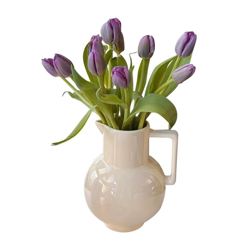 代购很贵韩国很奶很温柔的奶黄色陶瓷花瓶外贸奶壶冷水壶水培摆件