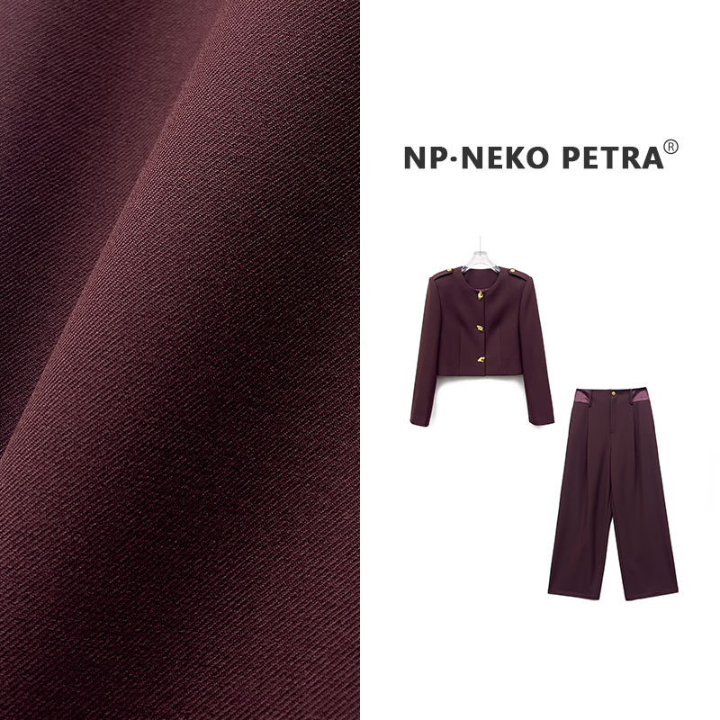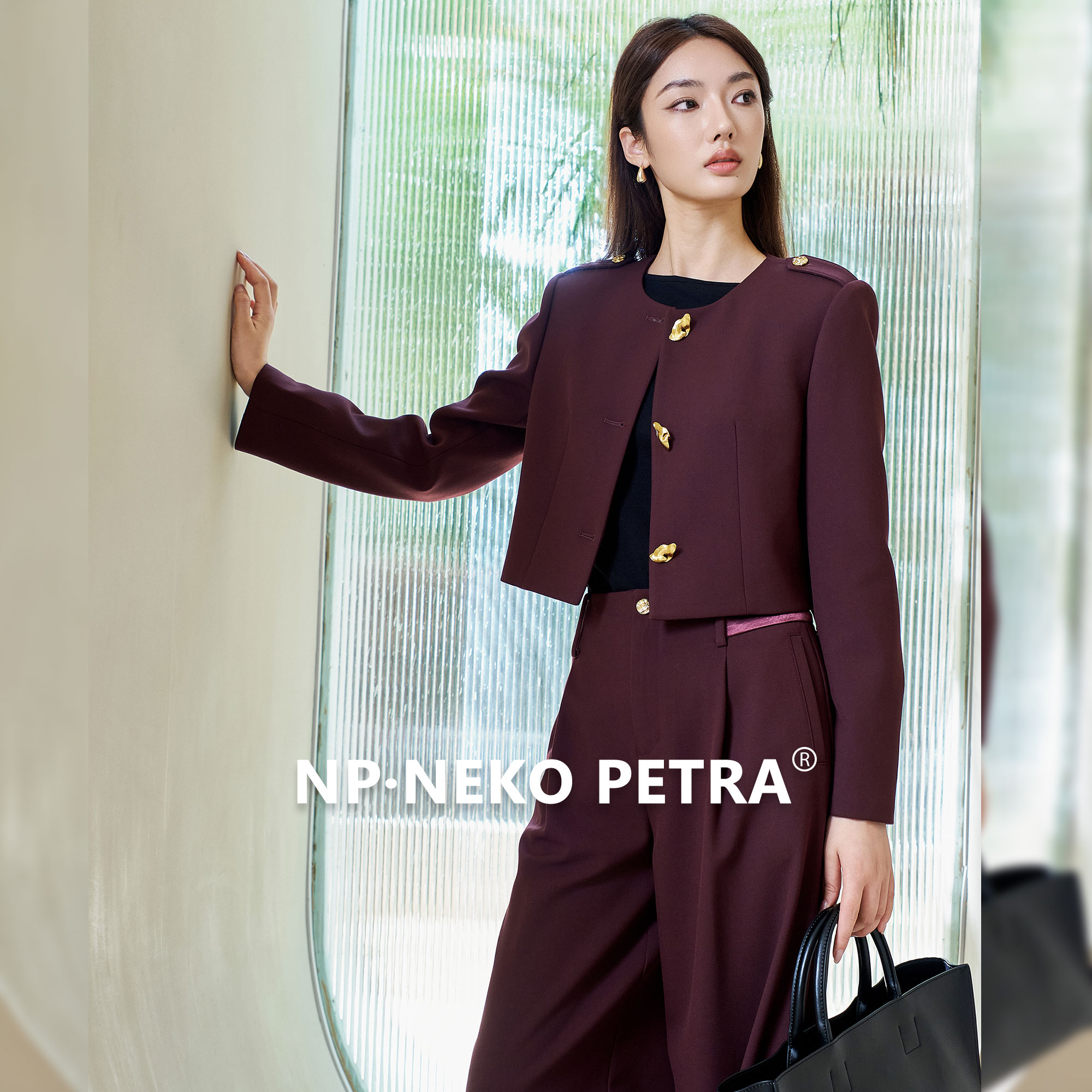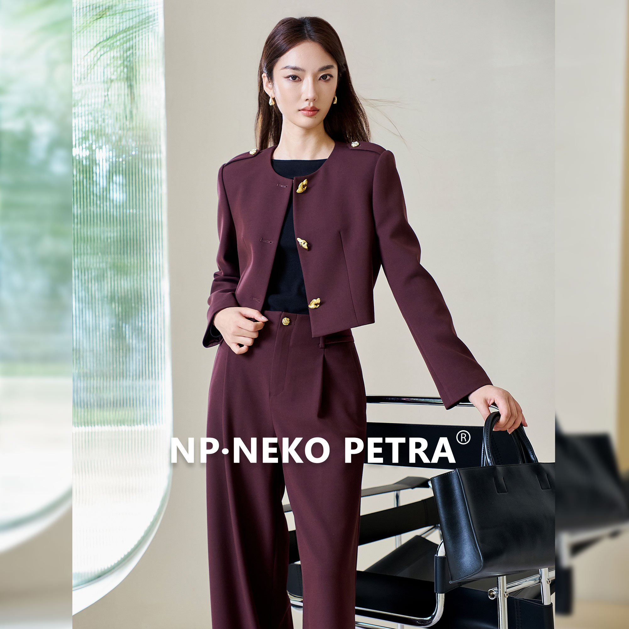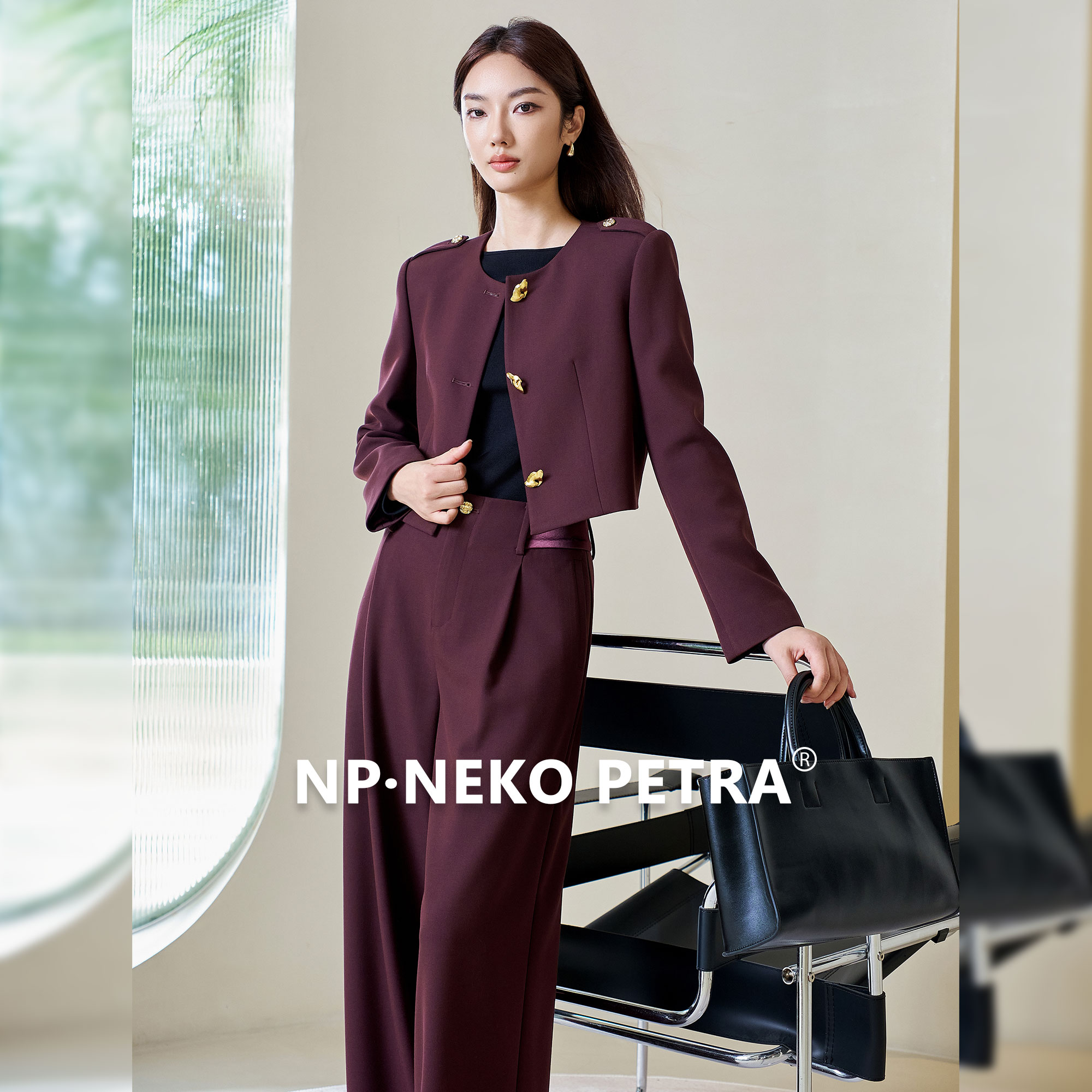 Neko Petra高级绛紫红色短外套时尚套装女2025秋新款阔腿裤两件套