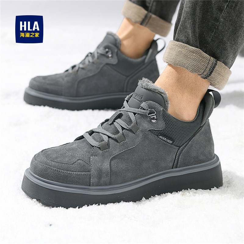 海澜之家男鞋正品加厚冬季加绒保暖棉鞋男真皮休闲板鞋防水雪地靴