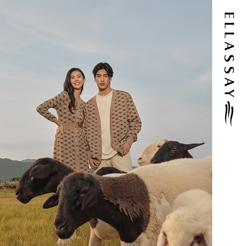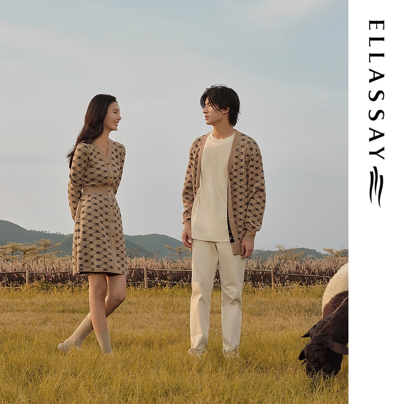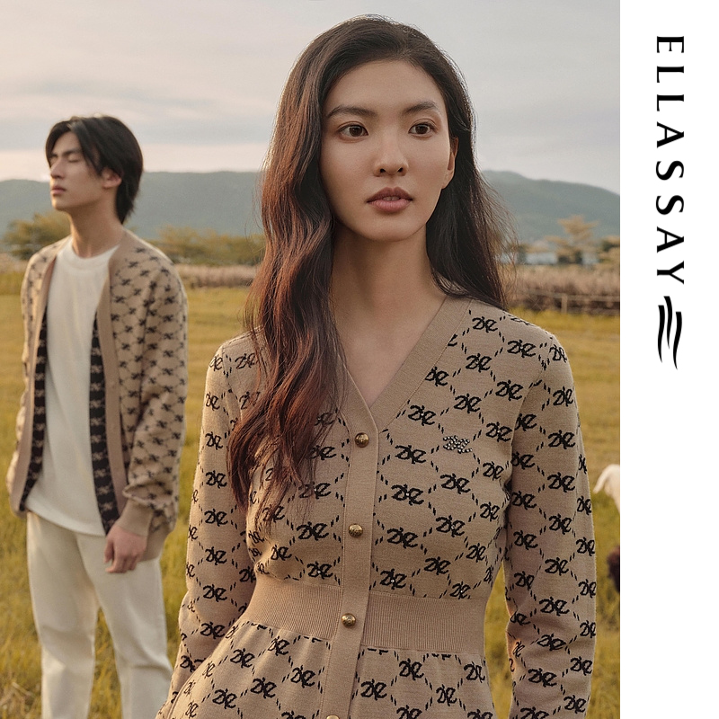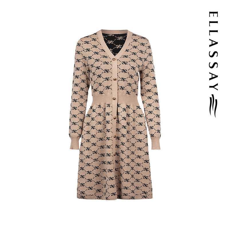歌力思奥莱秋冬新款高级时尚复古美拉德老花羊毛针织连衣裙女