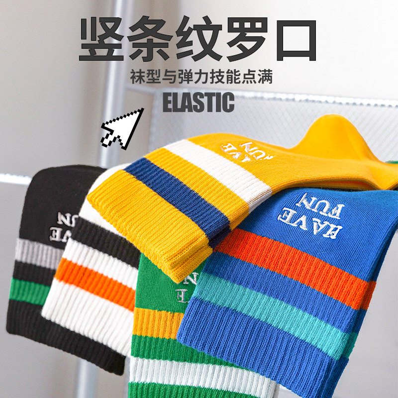 纯棉防臭吸汗条纹男款中筒袜