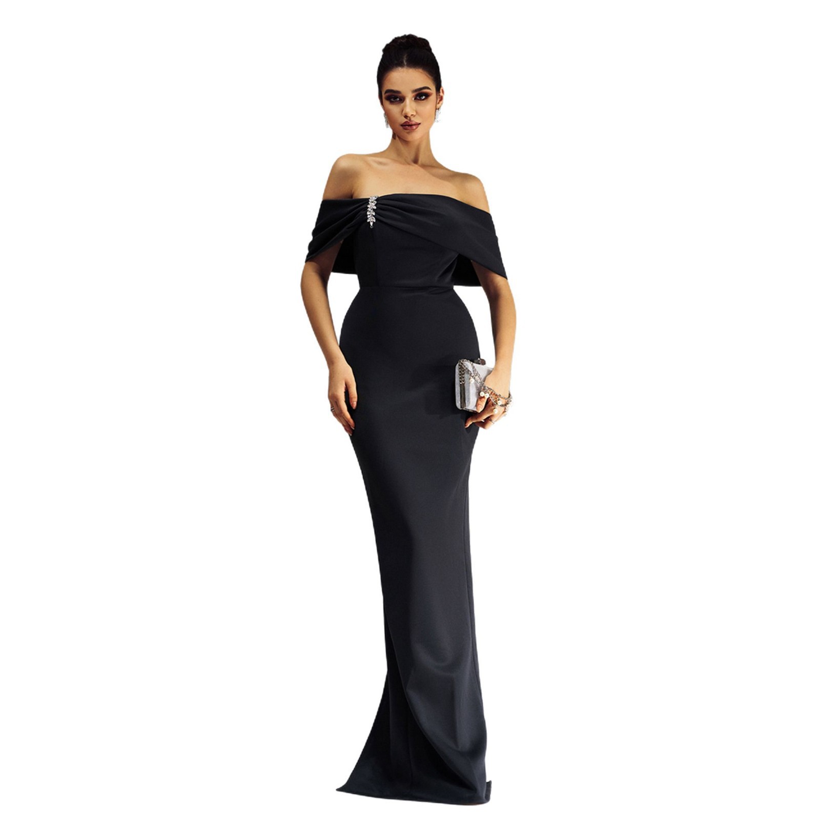 跨境亚马逊欧美女装新款无袖一字领宴会鱼尾晚礼服连衣裙