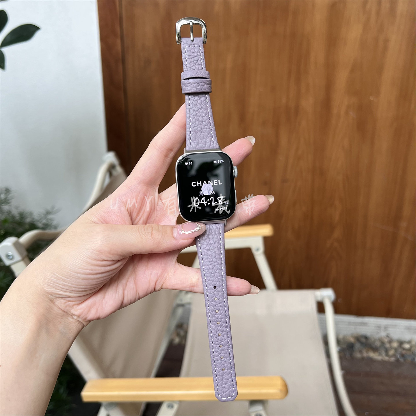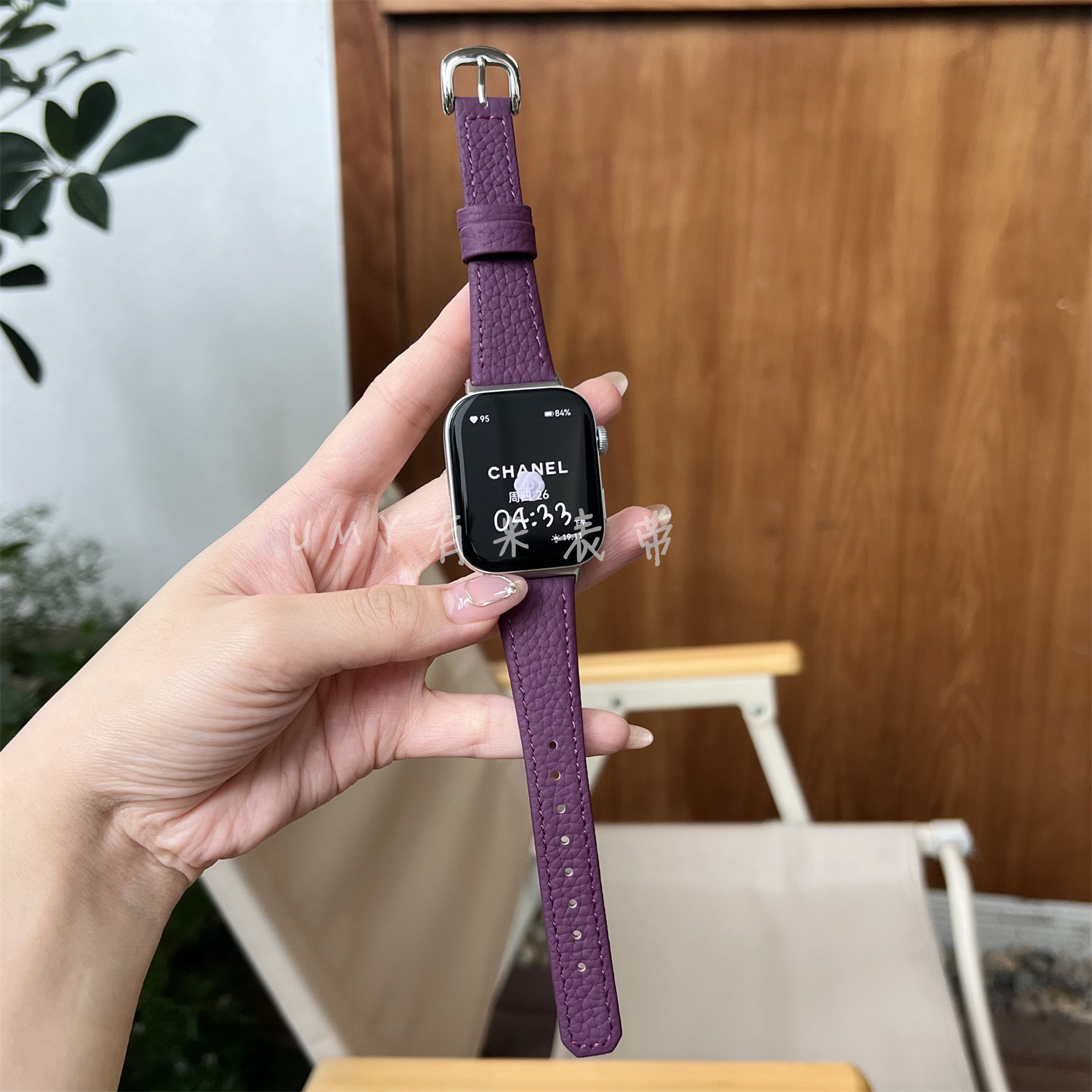 适用于华为watchFIT4荔枝纹真皮FIT3表带多巴胺紫柔软显白新女款