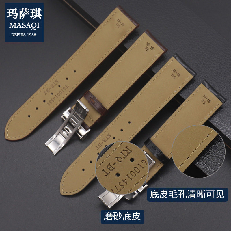适配天梭T019男唯思达系列1853真皮表带 T019.430A牛皮表带蝴蝶扣