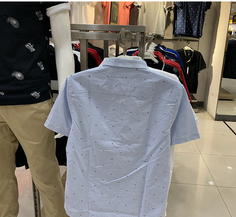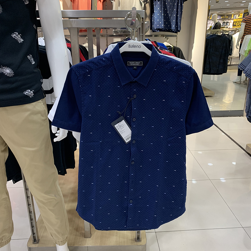 正品班尼路Baleno urban夏男装修身商务休闲衬衣鱼骨波点短袖衬衫