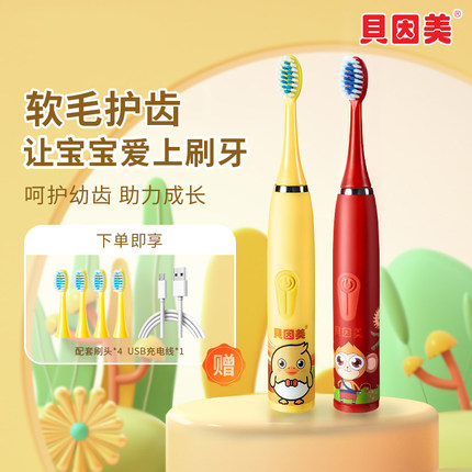 贝因美电动牙刷儿童专用换牙期声波软毛护龈防蛀去渍替换头充电式