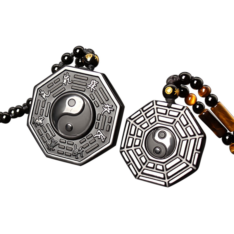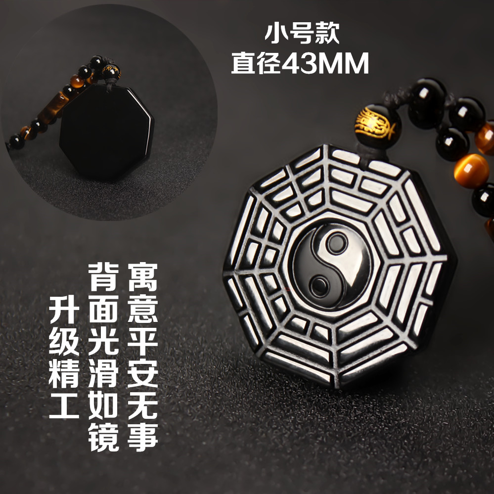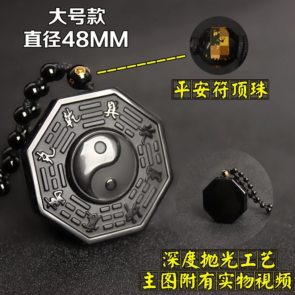太极八卦吊坠黑曜石乾坤阴阳鱼项链男女吉祥物挂件伏羲项水晶饰品