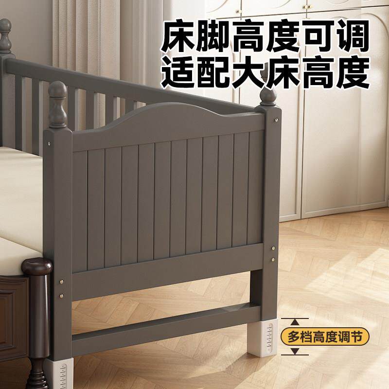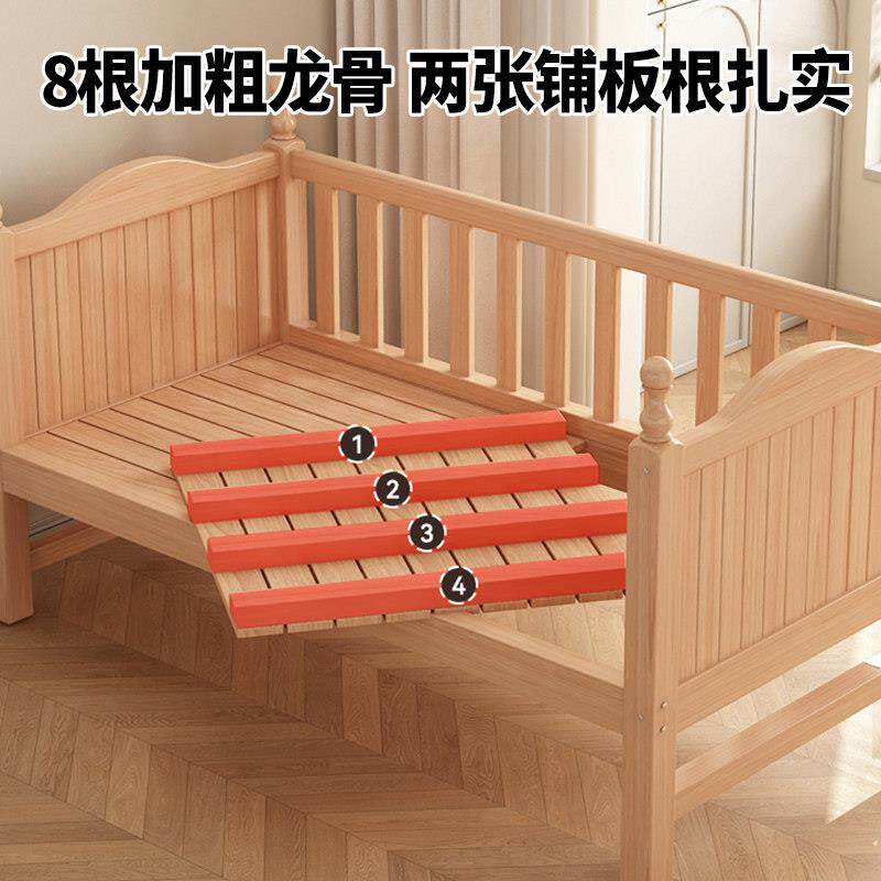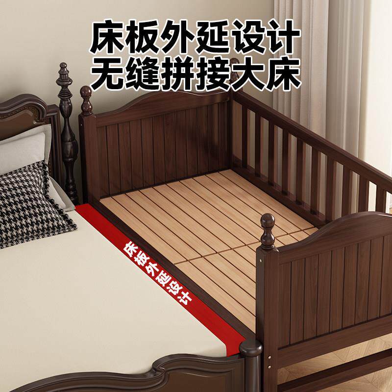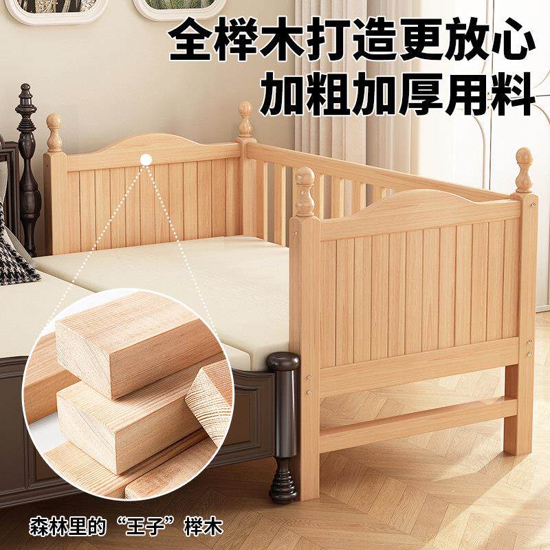 榉木儿童拼接床带护栏宝宝婴儿实木小床大人可睡床边加宽拼接大床