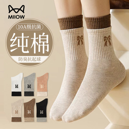 猫人袜子女纯棉秋冬新款爆款防臭抗菌防脚气秋季中筒袜冬长袜女士
