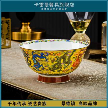 景德镇碗家用2025新款骨瓷碗中式陶瓷碗饭碗珐琅彩仿古拉面碗龙碗