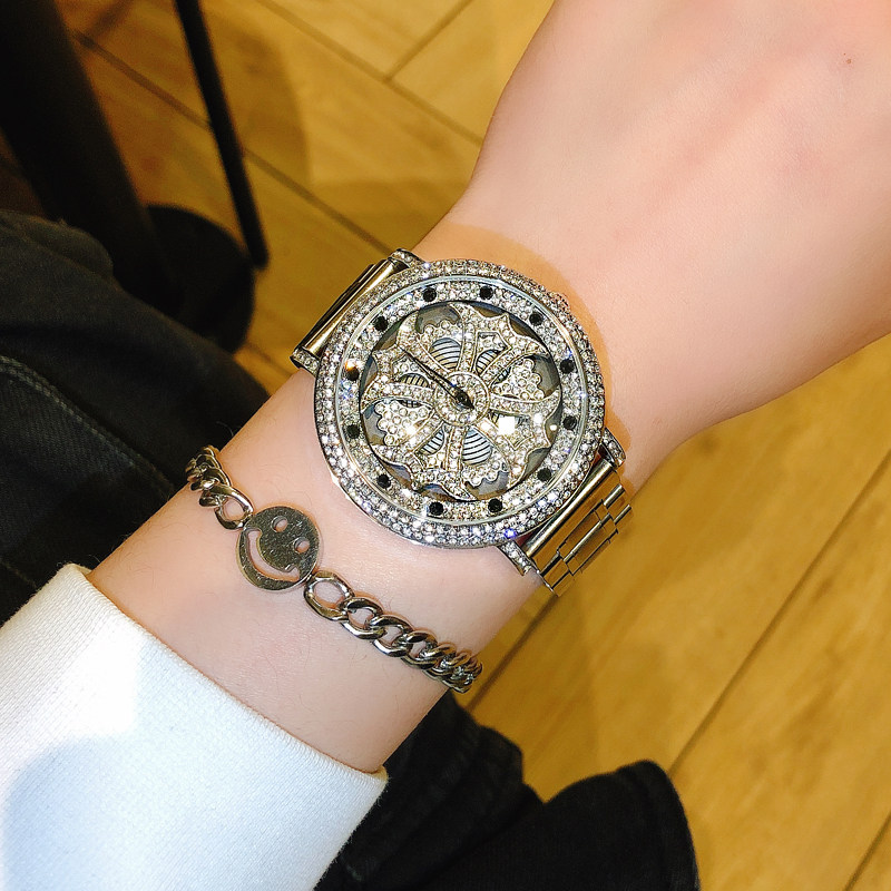 超闪个性时来运转手表男时尚概念五芒星镶钻大表盘非机械旋转表女