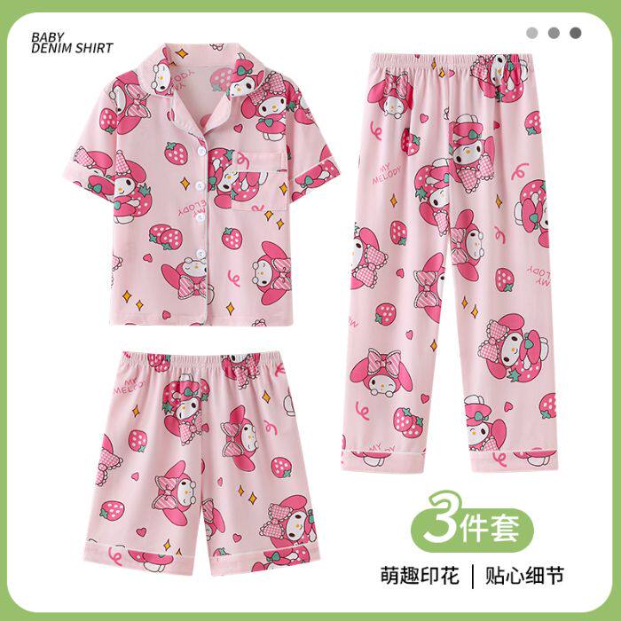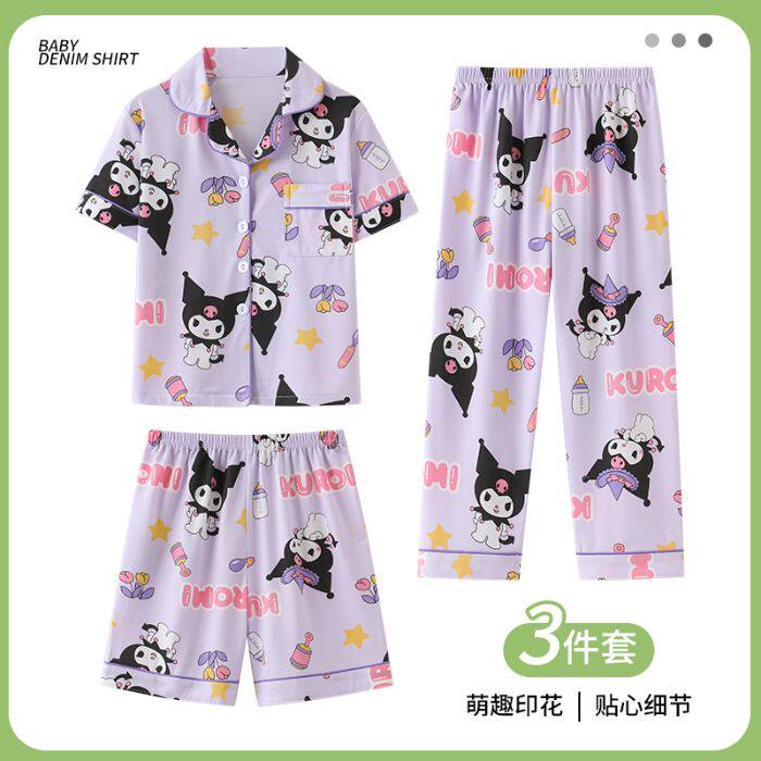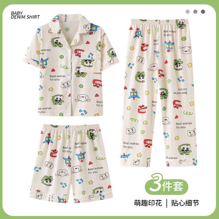 睡衣女童男童夏2025新款兄妹姐弟套装儿童史努比开襟衫翻领家居服