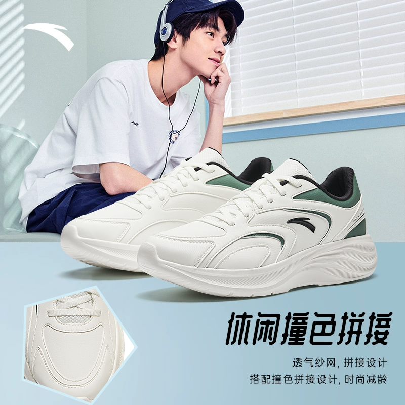 安踏男鞋运动鞋2025冬季新款官方正品男士鞋子皮面防水休闲跑步鞋