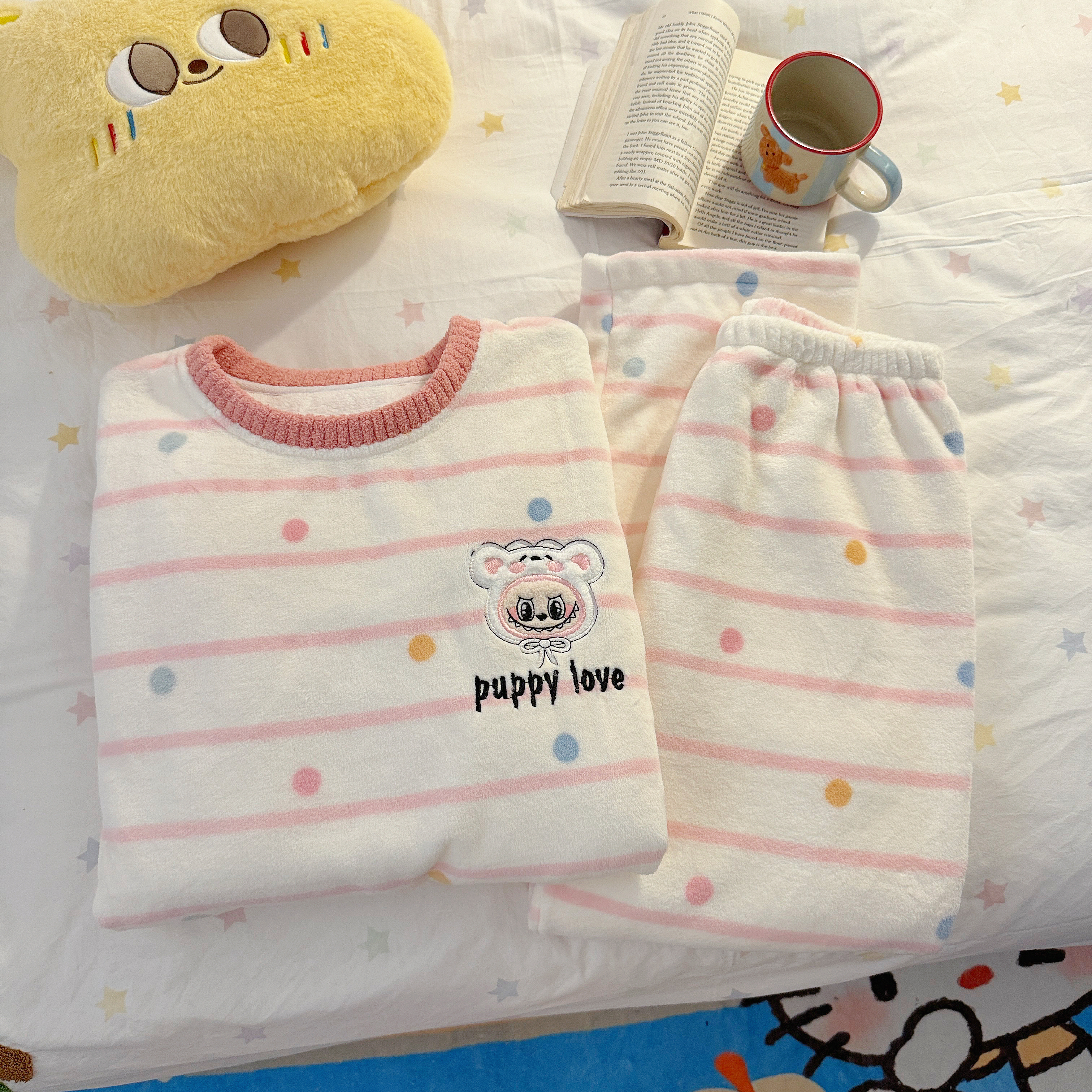 2025款法兰绒睡衣女款秋冬季珊瑚绒加绒加厚日系ins拉布布家居服