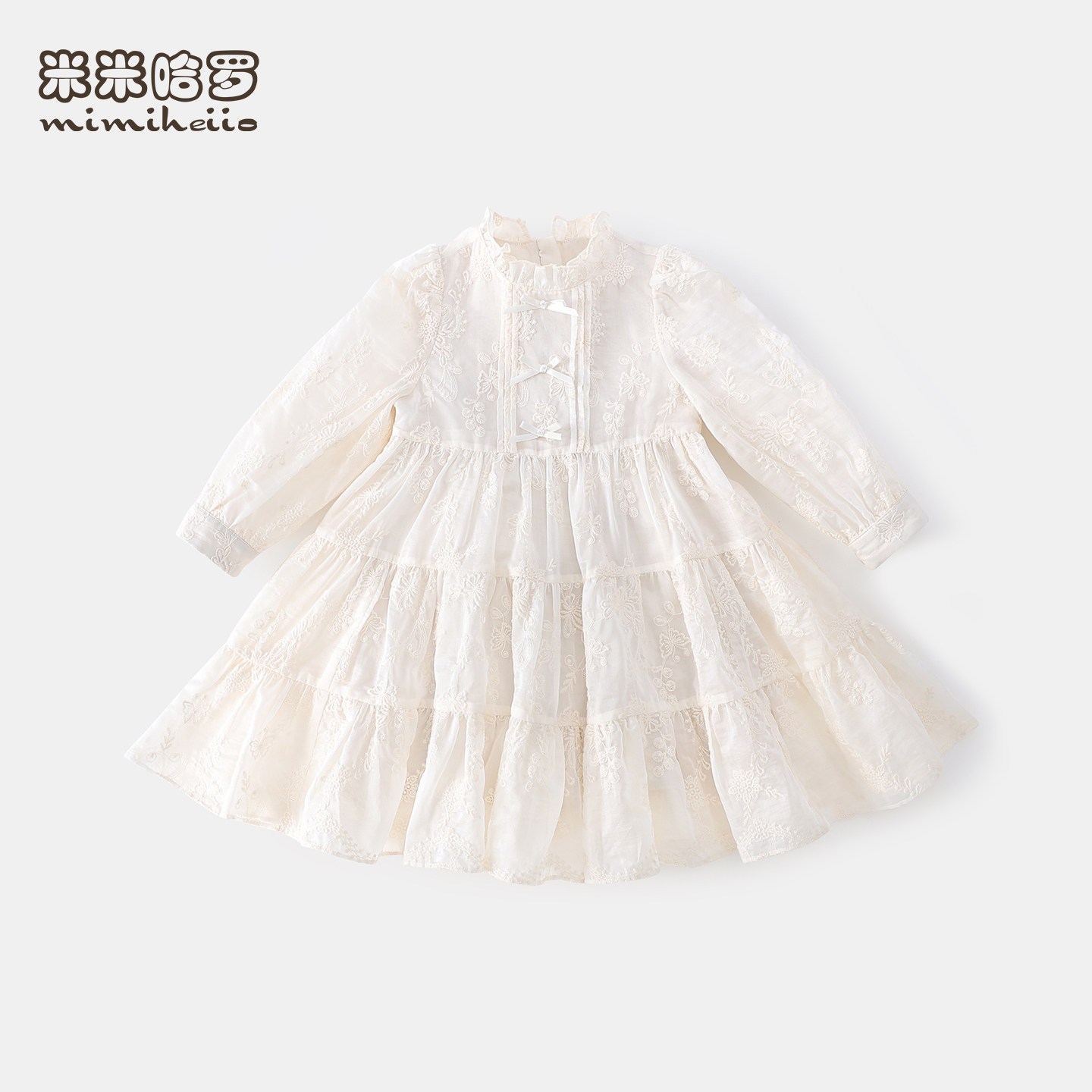 女童连衣裙秋装2025新款蕾丝棉布茶歇裙子女孩洋气纯色长袖公主裙