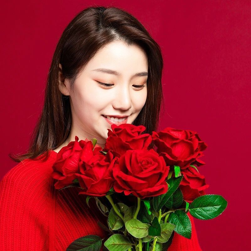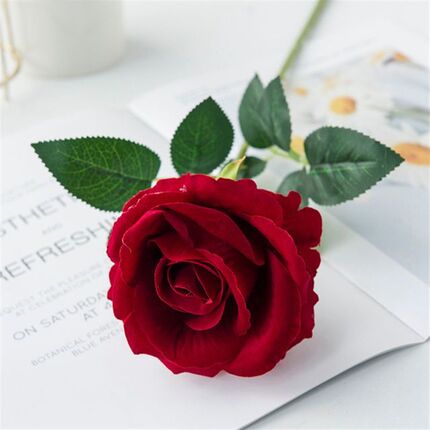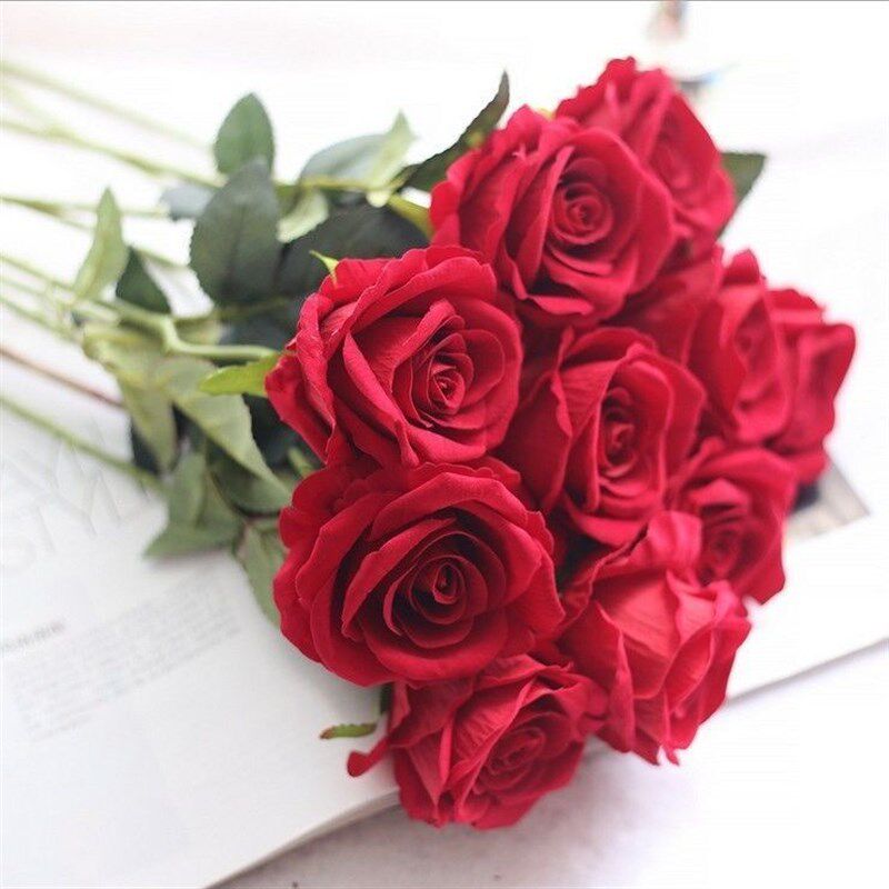 绒布仿真玫瑰客厅餐桌装饰假大红色婚庆拍摄道具