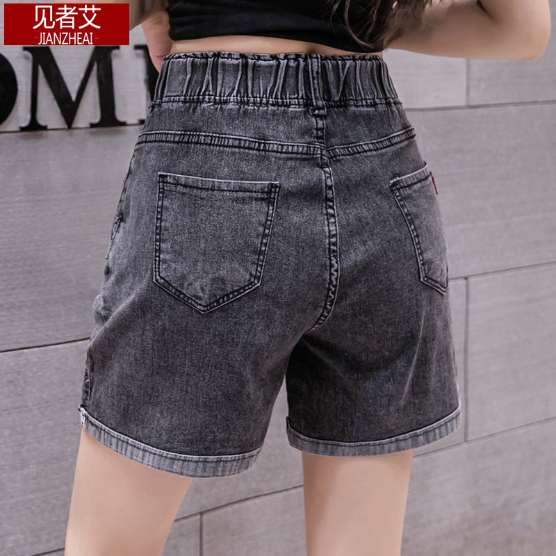 烟灰色牛仔短裤女夏季薄款松紧腰弹力高腰显瘦宽松阔腿四份热裤潮