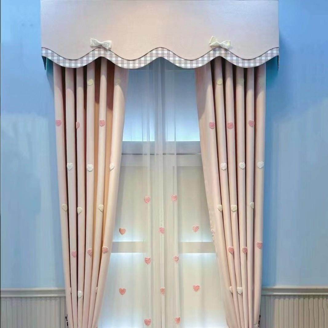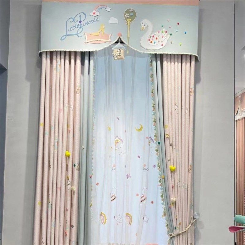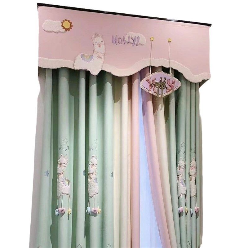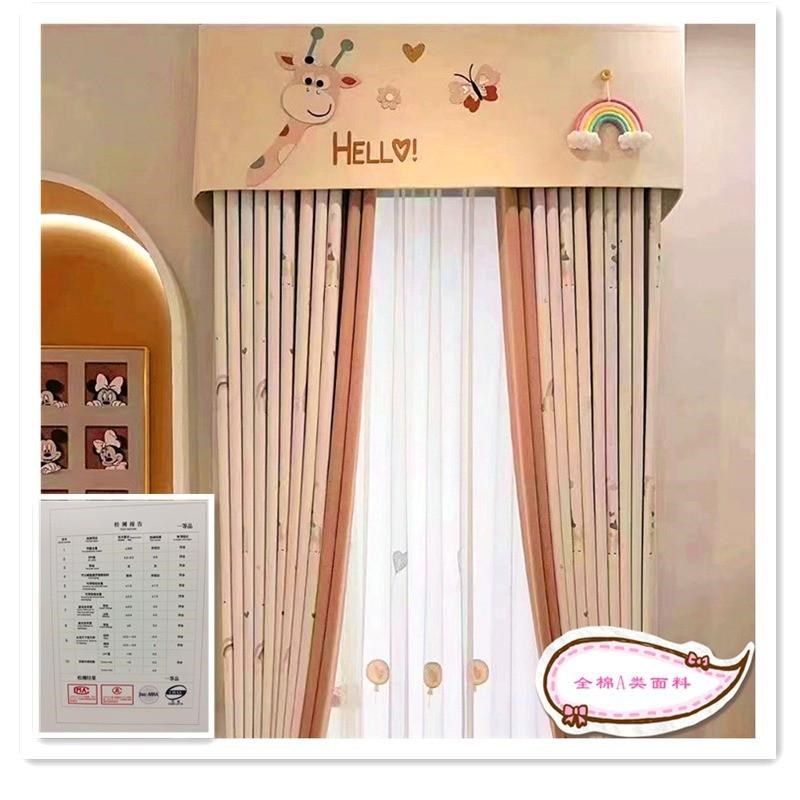 新款儿童房卡通绣花全遮光窗帘男孩女孩卧室装饰门帘X挂帘打孔客